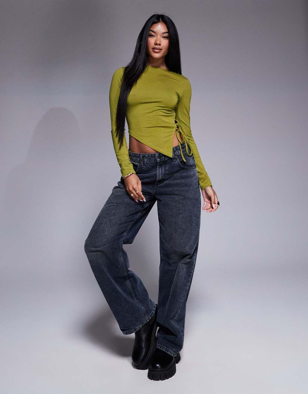 Top by ASOS DESIGN Complete your top collection Round neck Long sleeves Lace-up side Asymmetric hem Slim fit