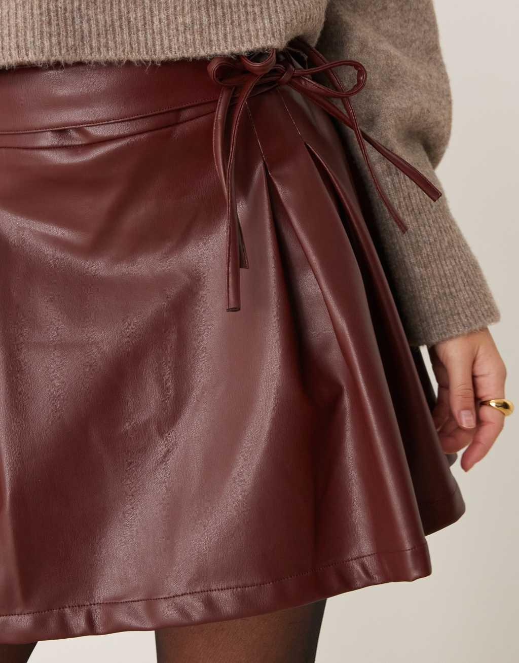 ASOS DESIGN leather look pleated mini skirt in burgundy