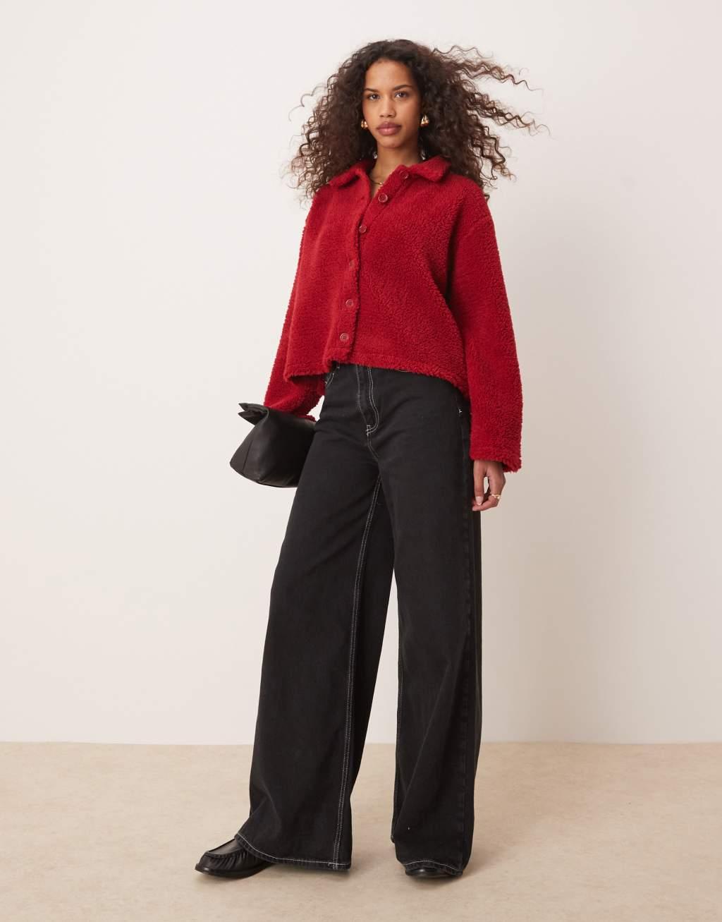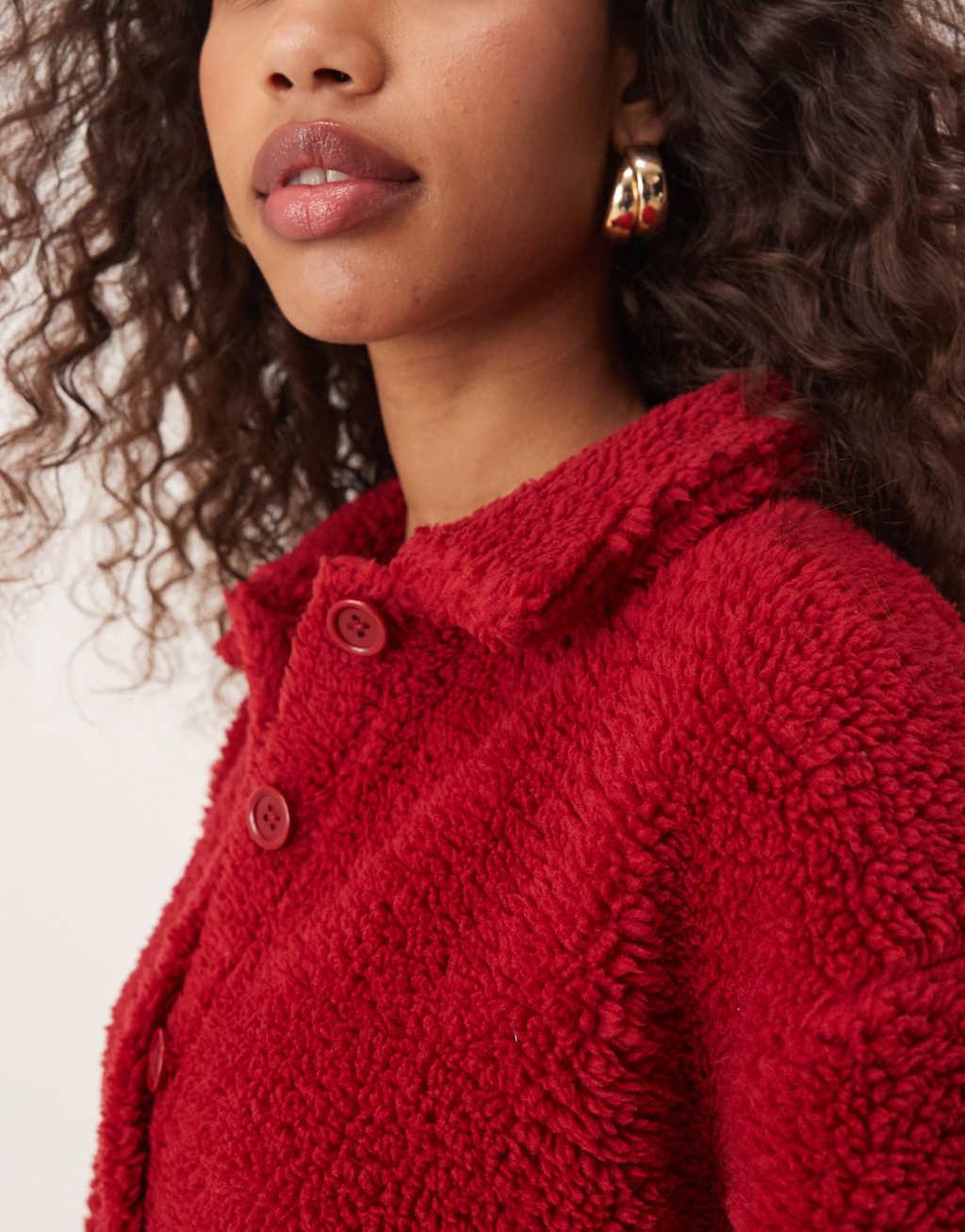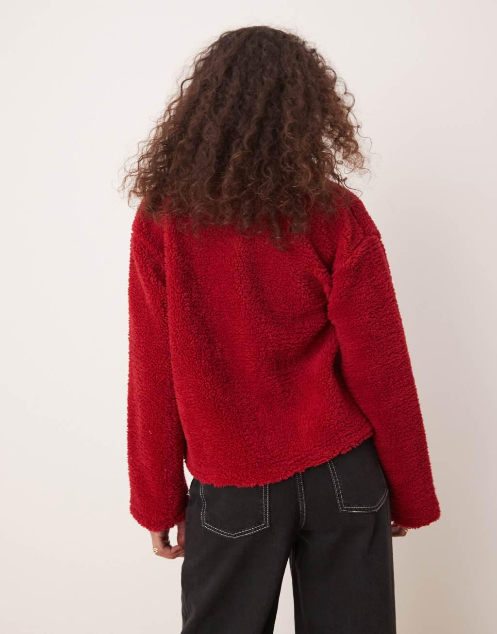 ASOS DESIGN long sleeve teddy cardigan in red