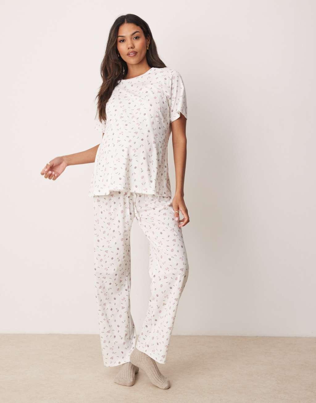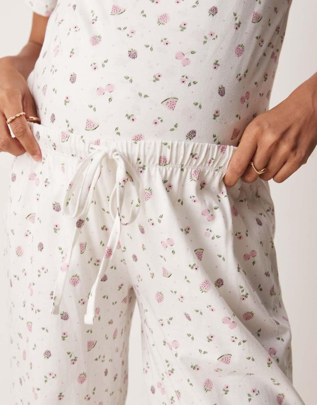 ASOS DESIGN Maternity nursing tee & pants pajama set in fruit ditsy print
