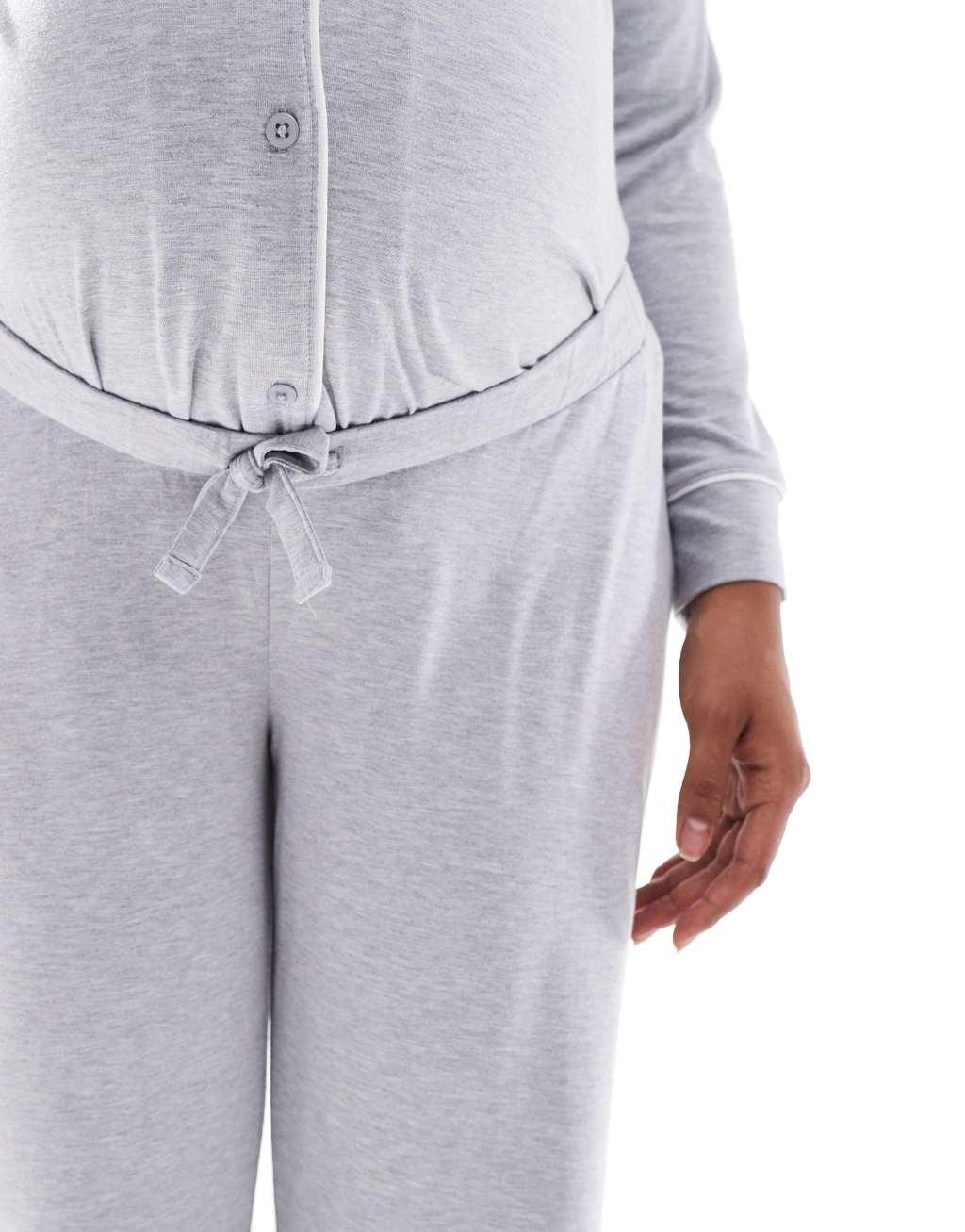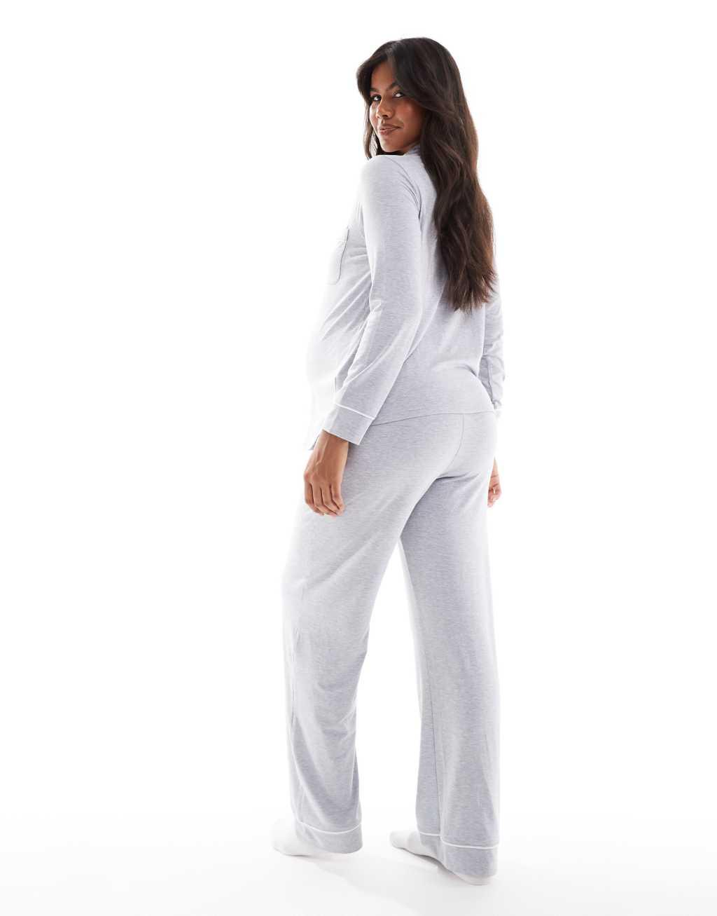 Maternity by ASOS Maternity Today's uniform Includes a shirt and pants Contrast piping Full length Relaxed fit Designed to fit you from bump to baby We’d like you to know our model is wearing a faux bump The bump measures 52cm from side to side