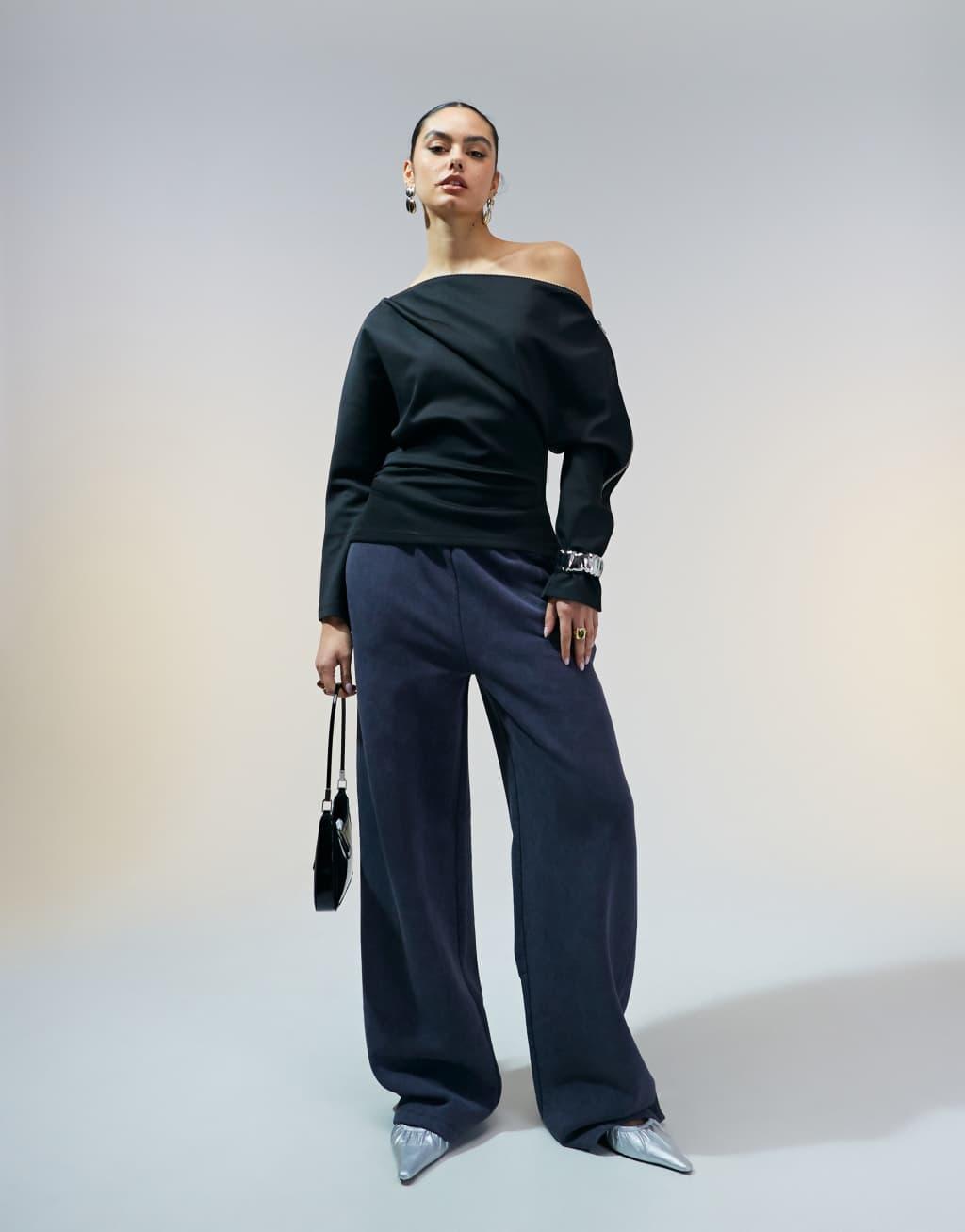 Hoodies & Sweatshirts by ASOS DESIGN Your cart called, it wants this Off-shoulder style Zip fastening to sleeves Ruched details Regular fit