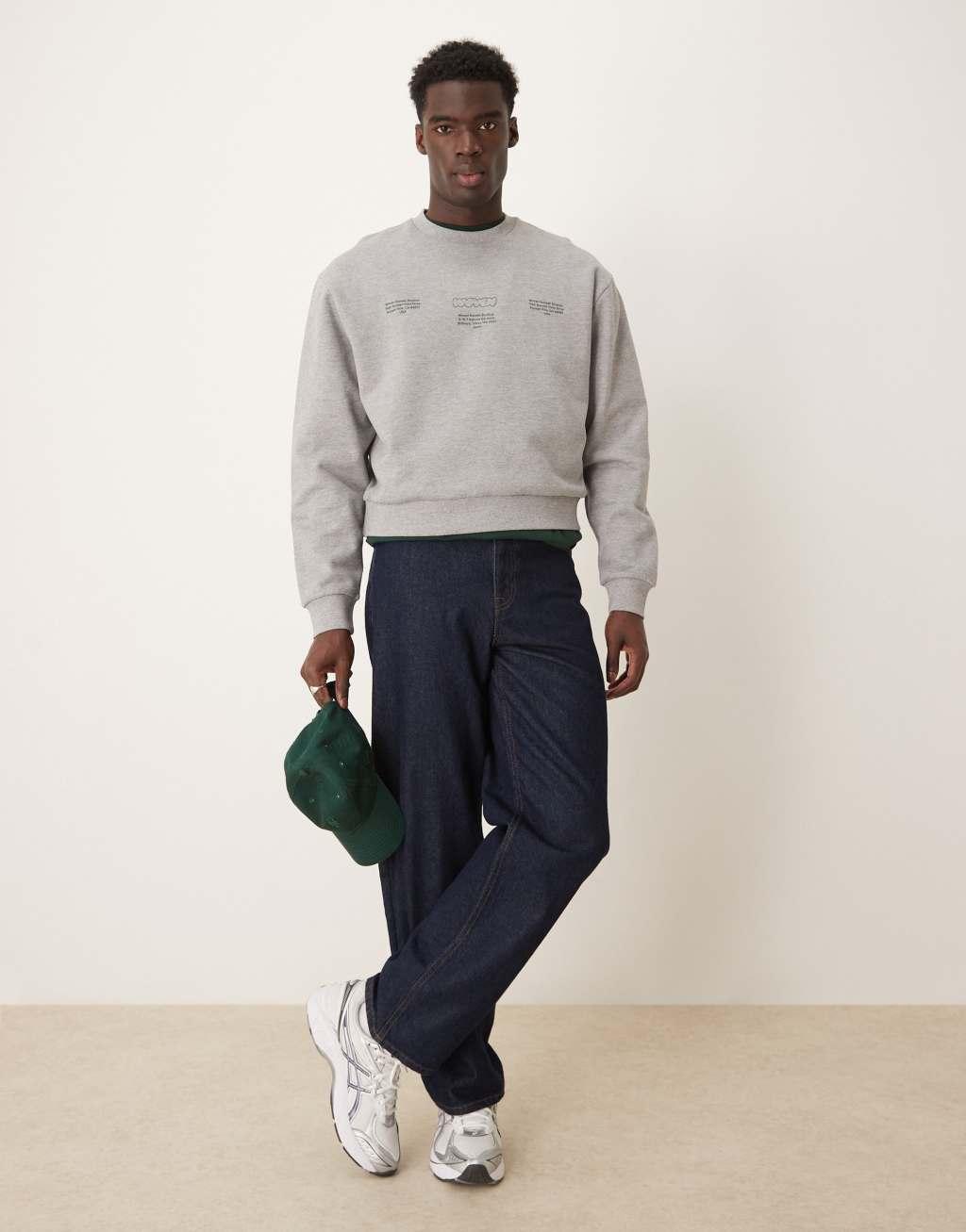 ASOS DESIGN oversized drop shoulder sweatshirt with sunset print in gray heather