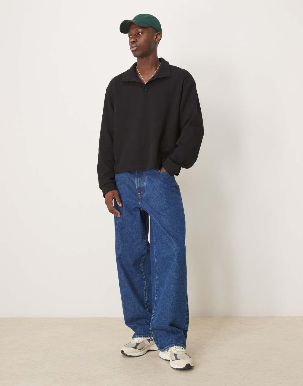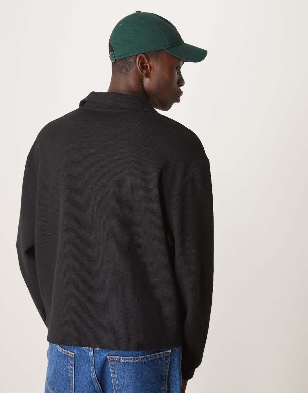 ASOS DESIGN oversized dropped shoulder boxy brushed waffle funnel neck sweatshirt in black