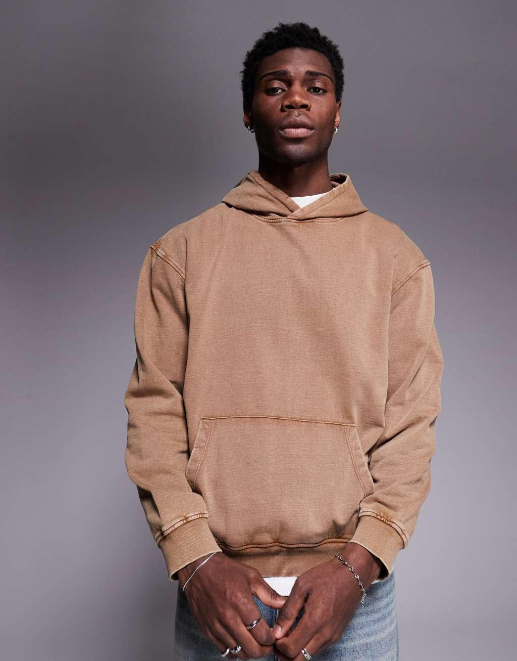 ASOS DESIGN oversized hoodie in washed brown - part of a set