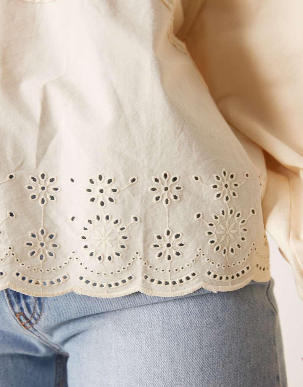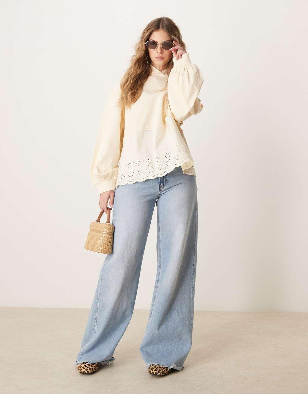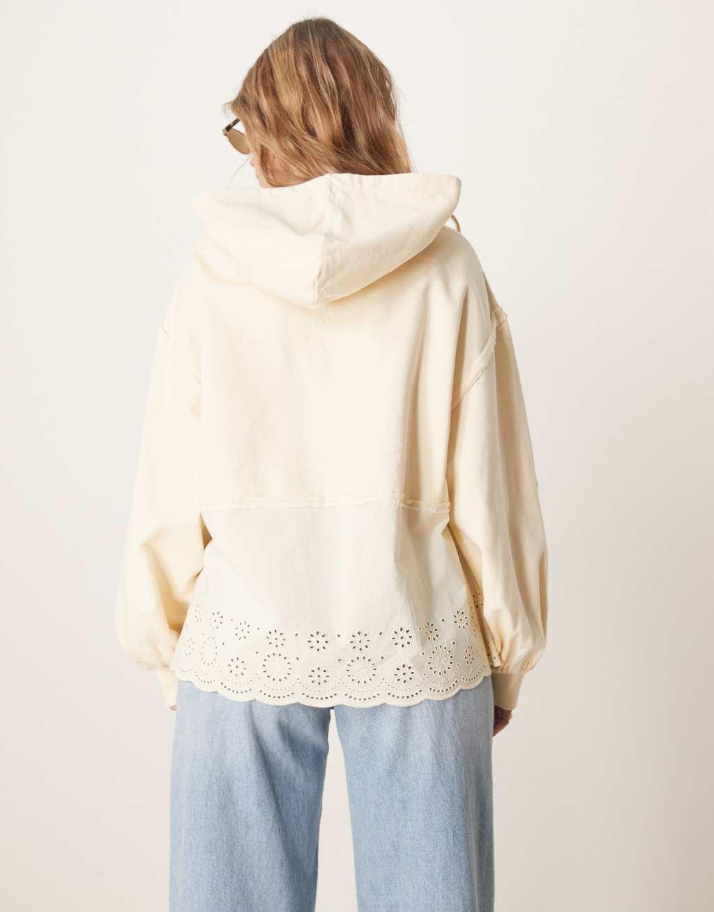 ASOS DESIGN oversized hoodie with embroidery detail in washed cream