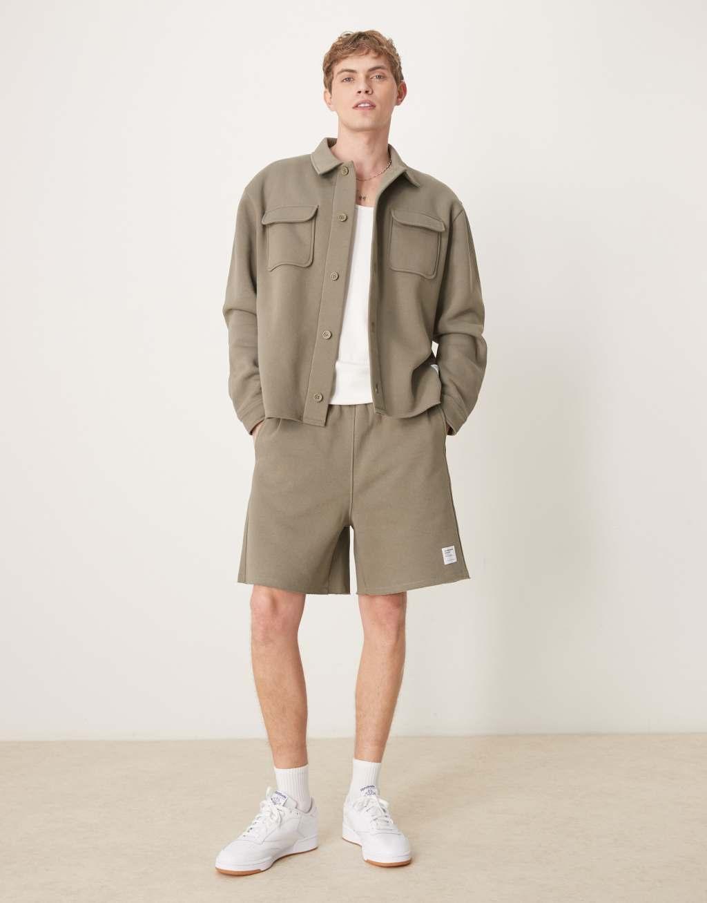ASOS DESIGN oversized jersey jacket in khaki - part of a set