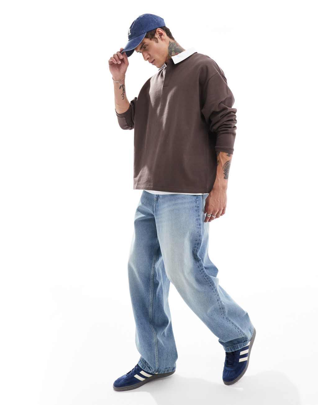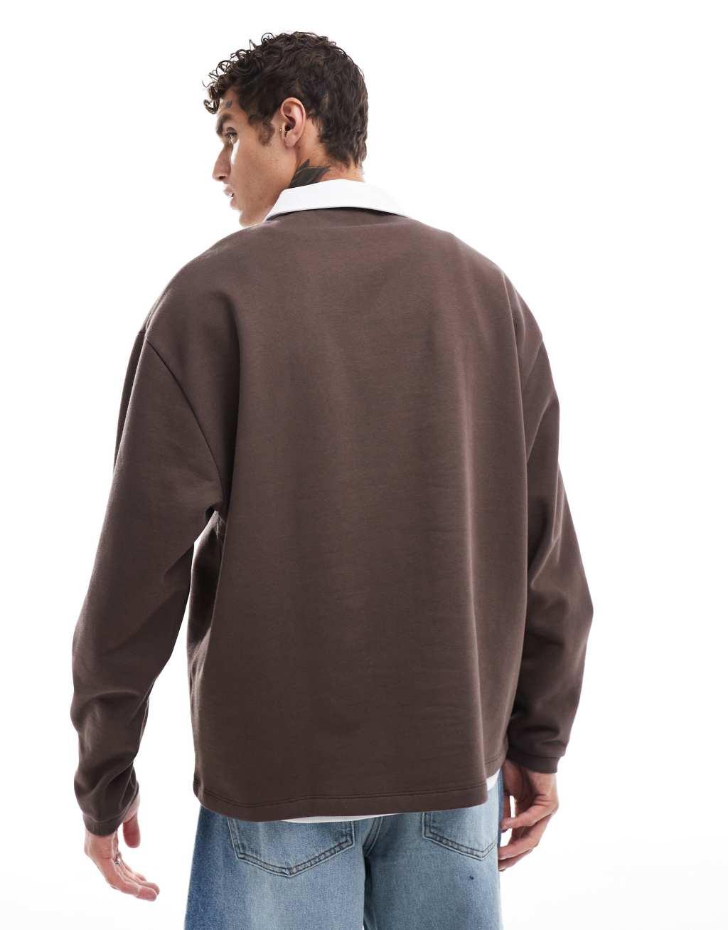 ASOS DESIGN oversized rugby polo sweatshirt in brown