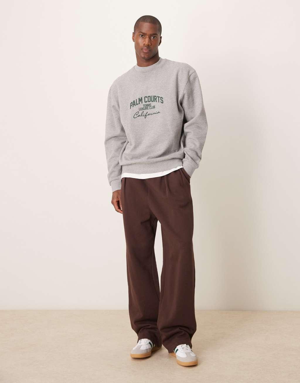 ASOS DESIGN oversized sweatshirt with green chest print in gray heather