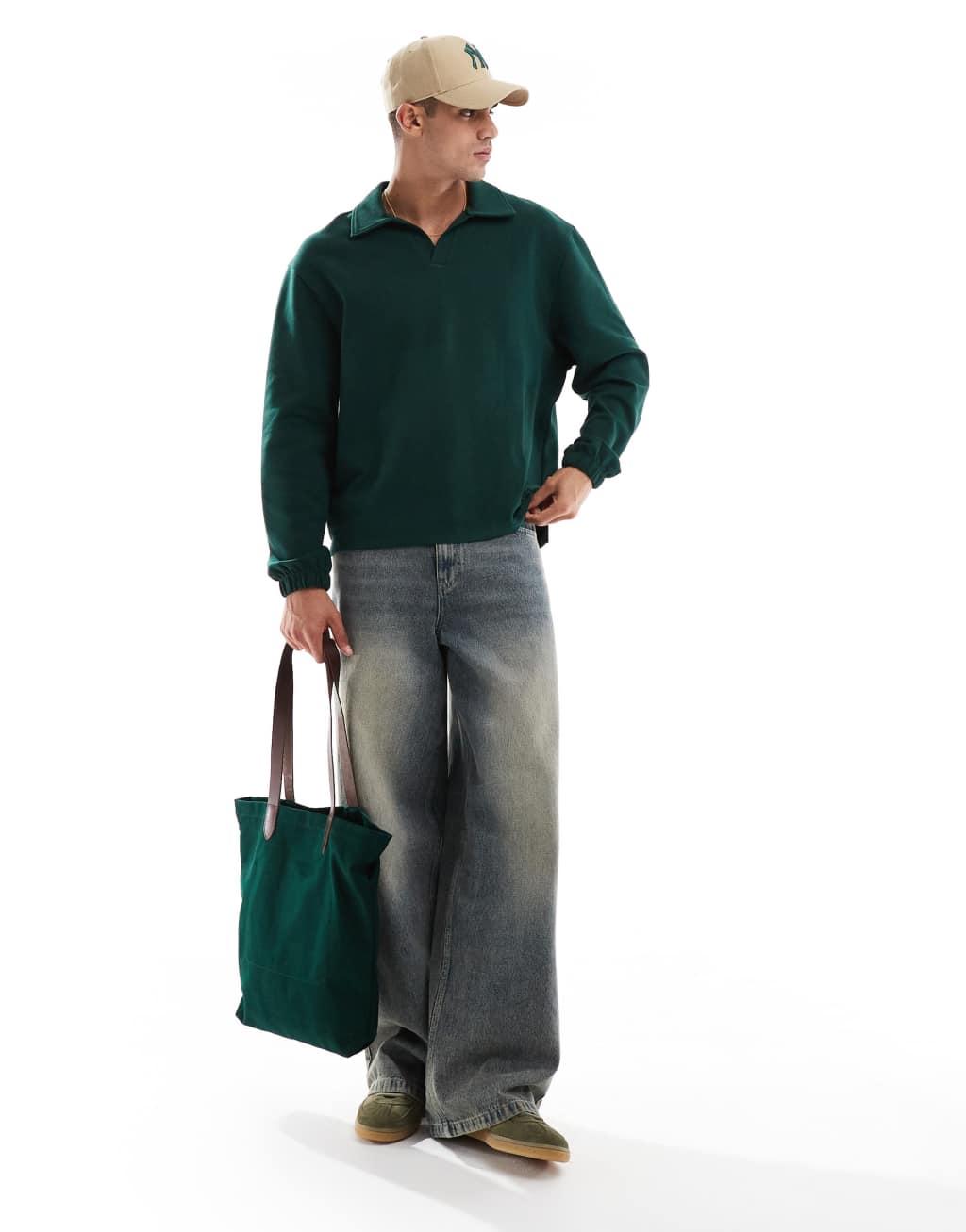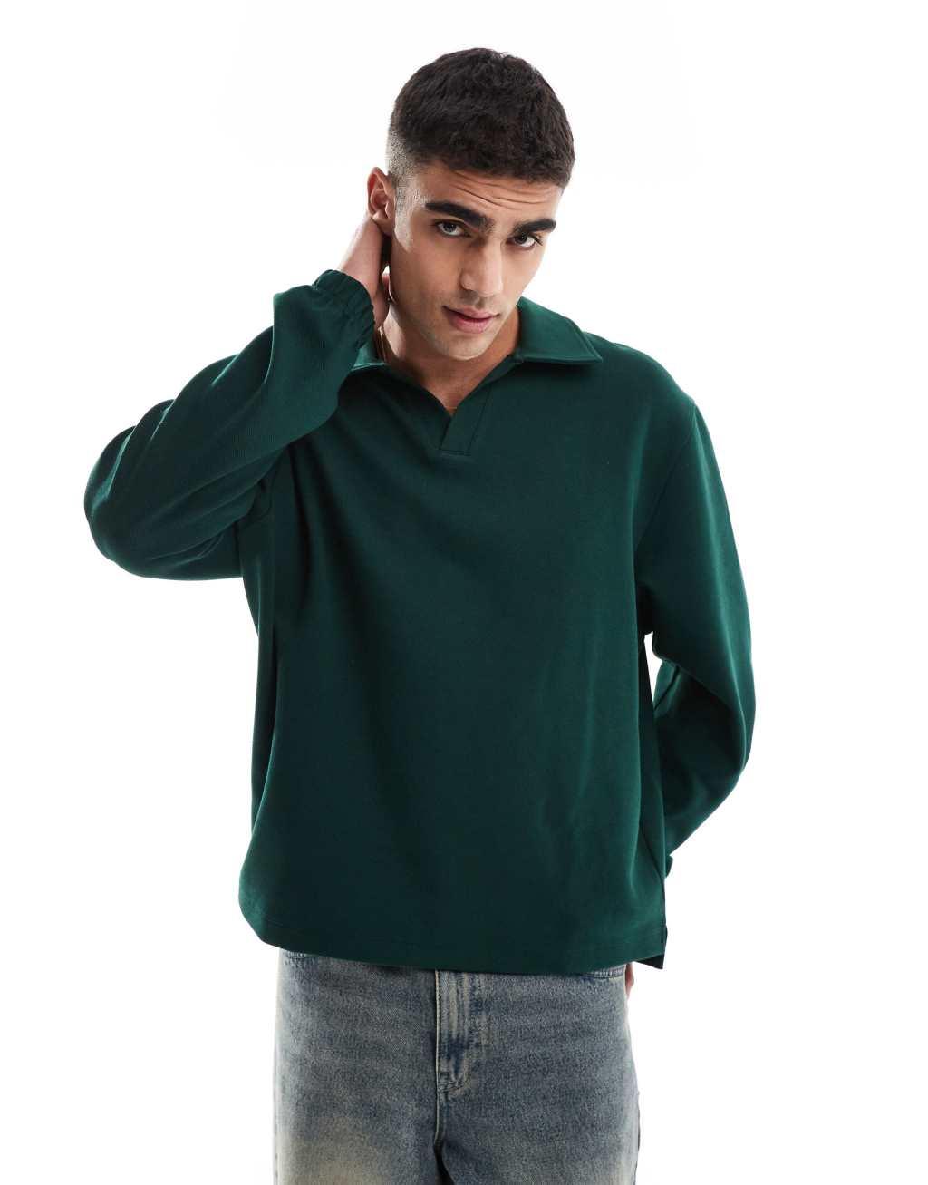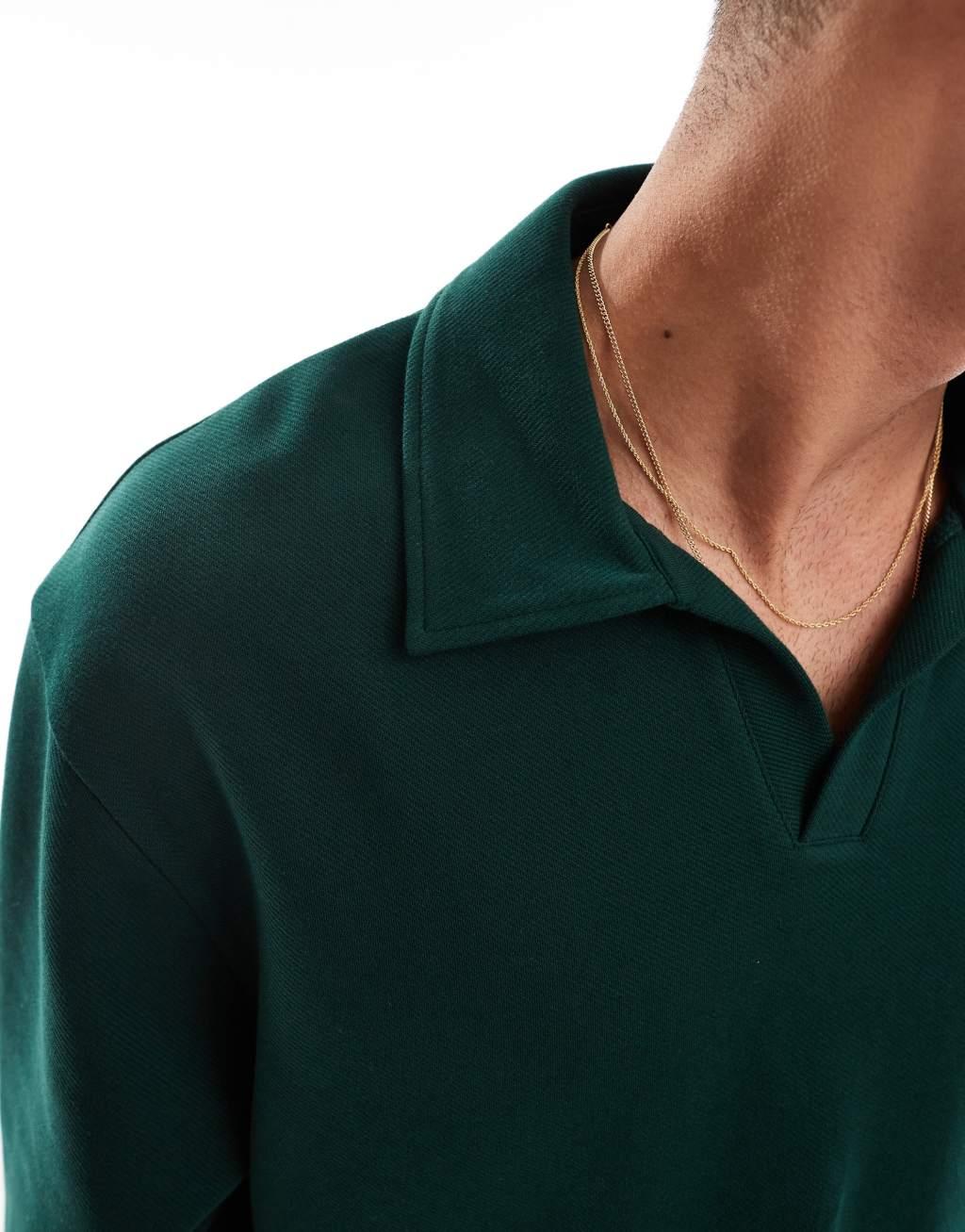 ASOS DESIGN oversized twill jersey rugby polo in dark green
