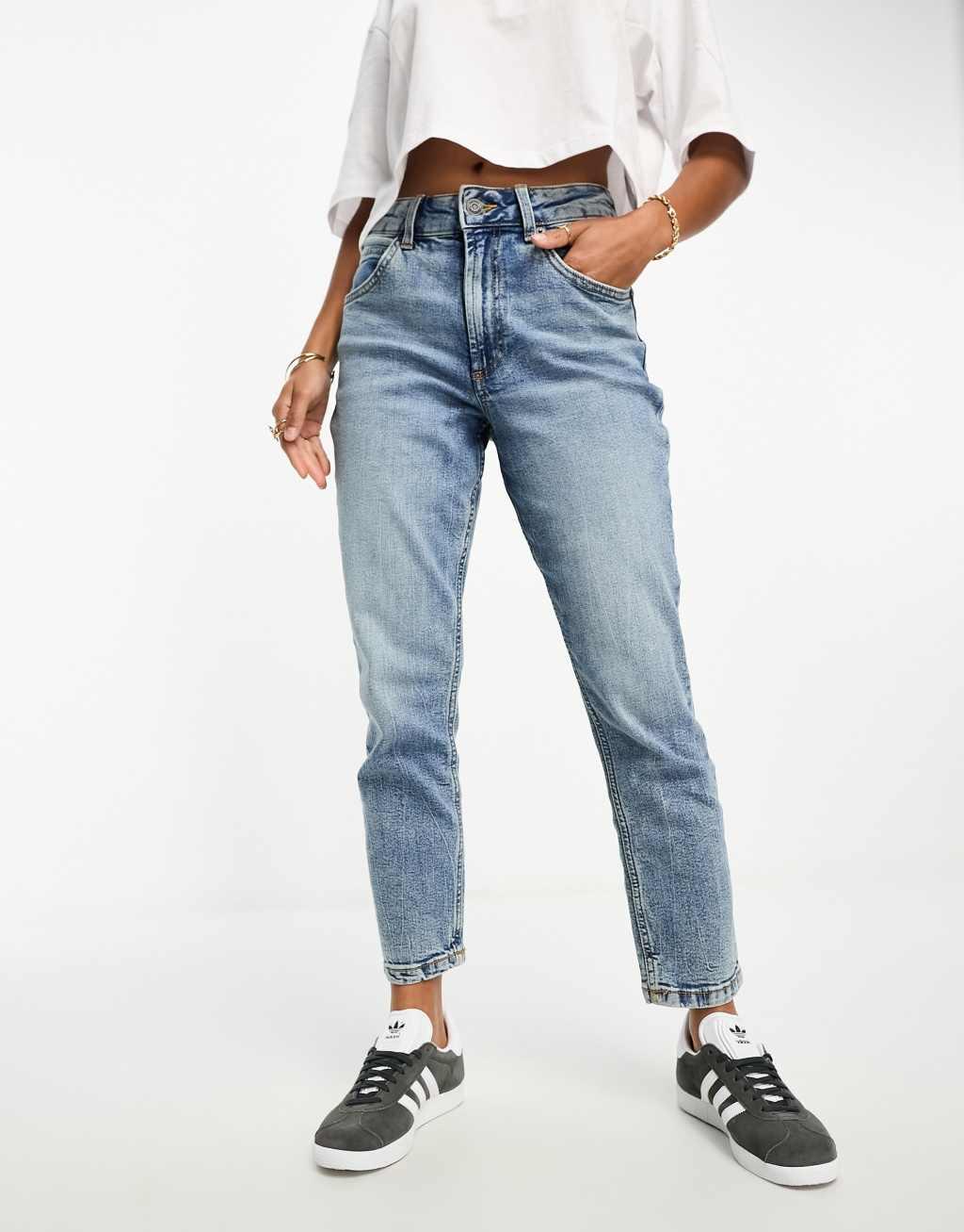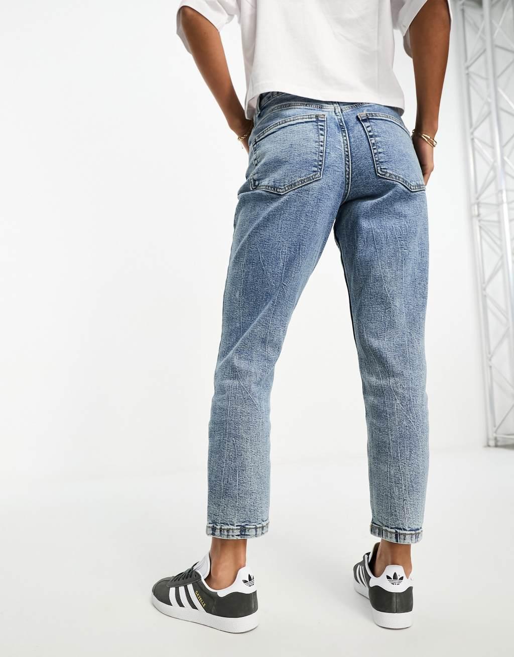 ASOS DESIGN Petite slim fit comfort mom jeans in mid blue