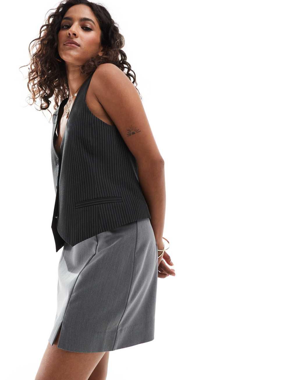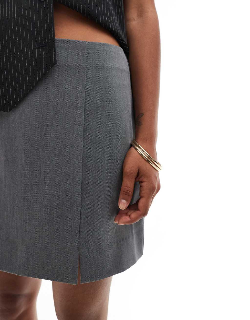 ASOS DESIGN Petite tailored mini skirt with splits in gray