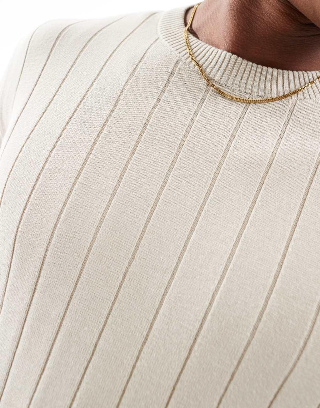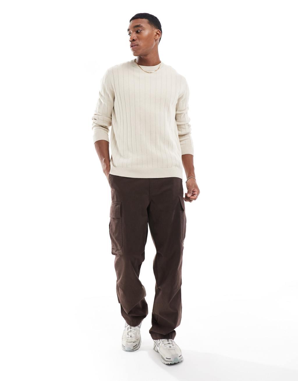ASOS DESIGN relaxed knit wide ribbed sweater in oatmeal