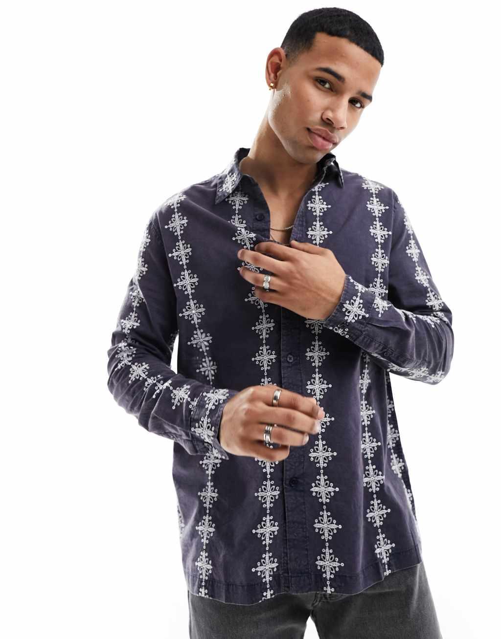ASOS DESIGN relaxed shirt with contrast eyelet stripe-Navy
