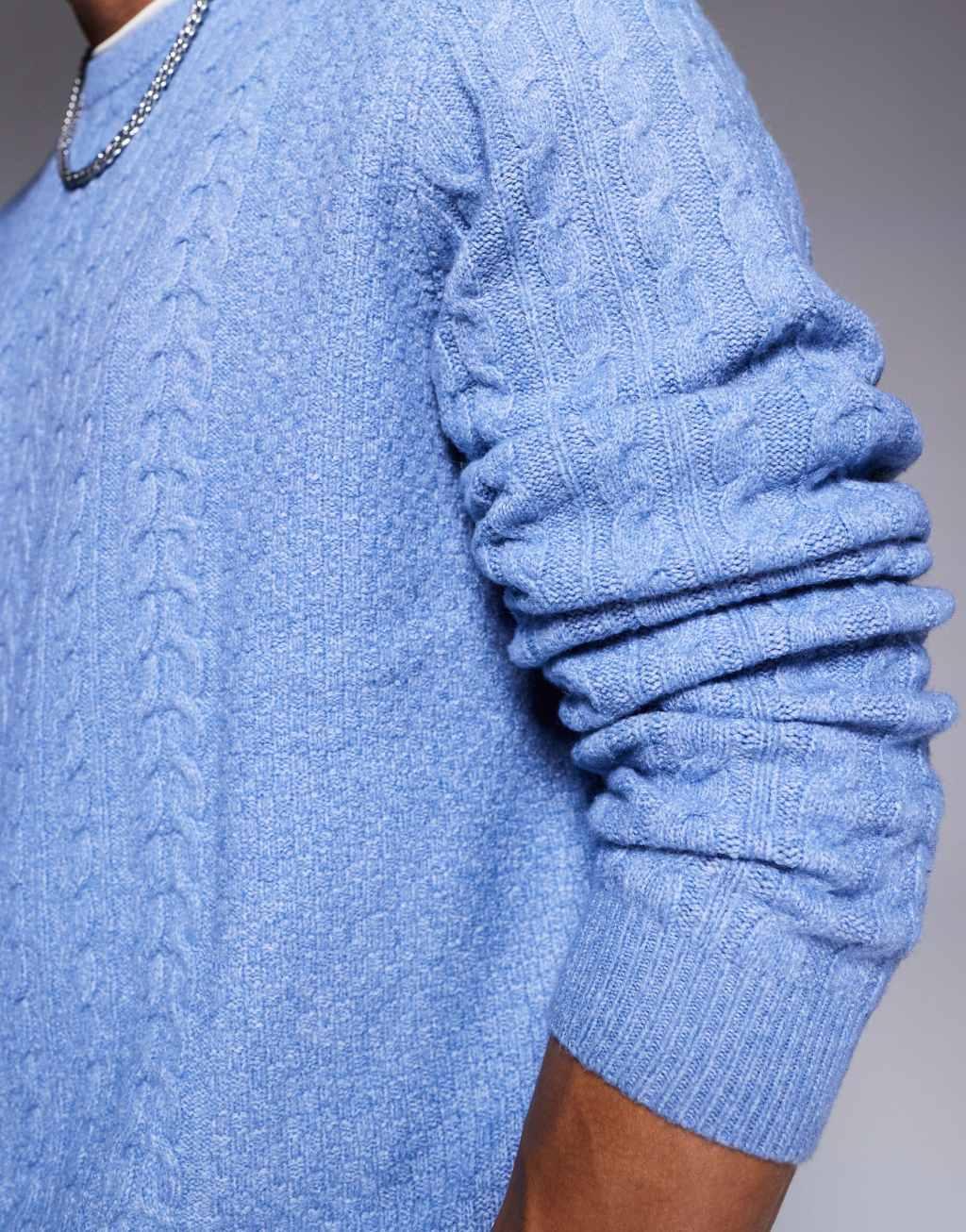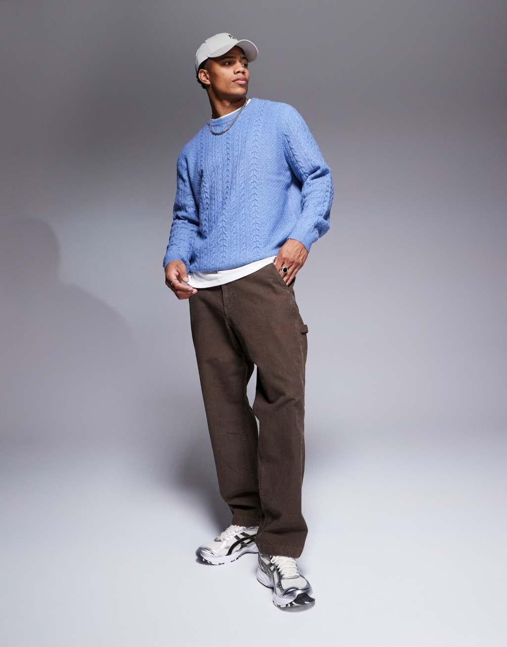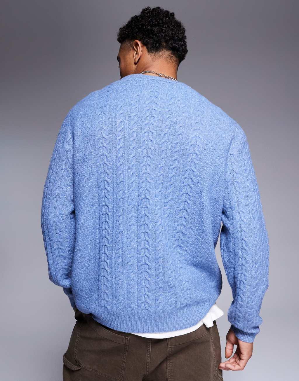 ASOS DESIGN relaxed slouchy crew neck cable knit sweater in blue