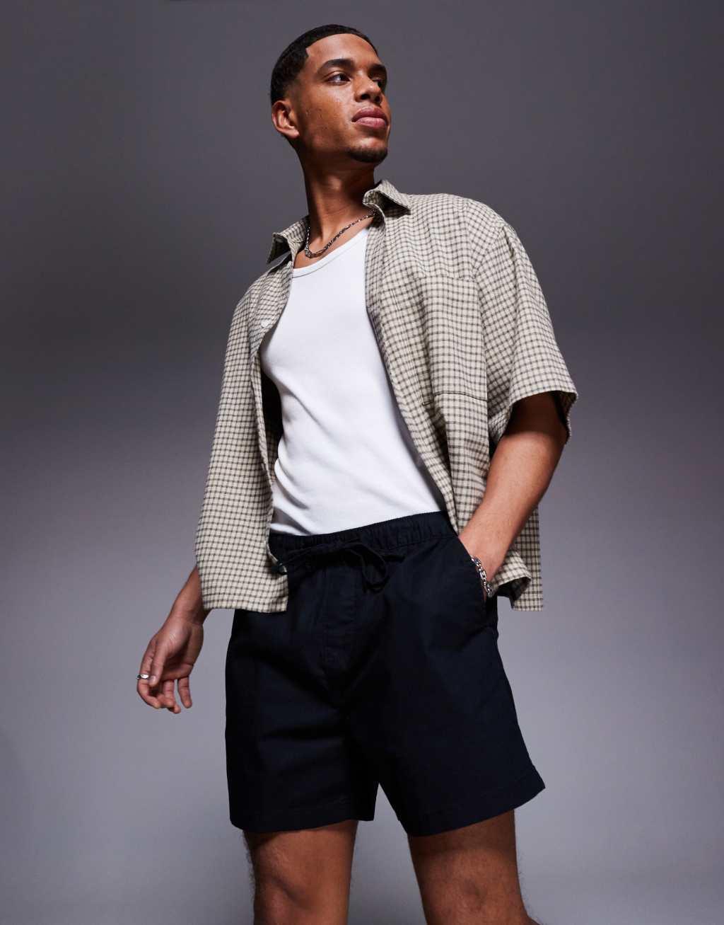 Shorts by ASOS DESIGN Plain design Regular rise Elasticated drawstring waist Functional pockets Relaxed fit