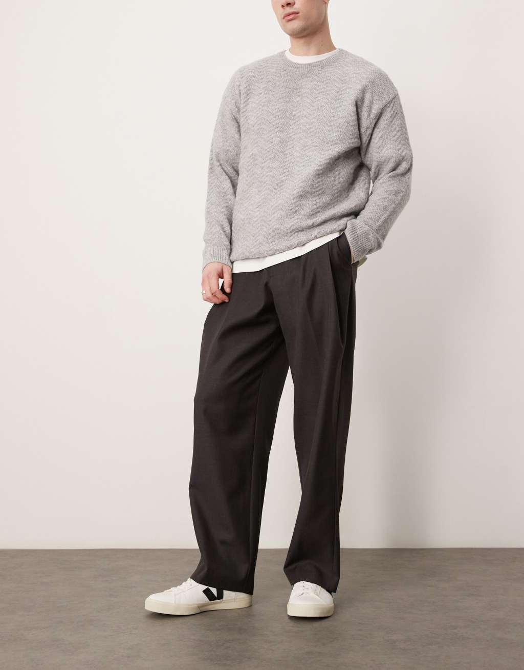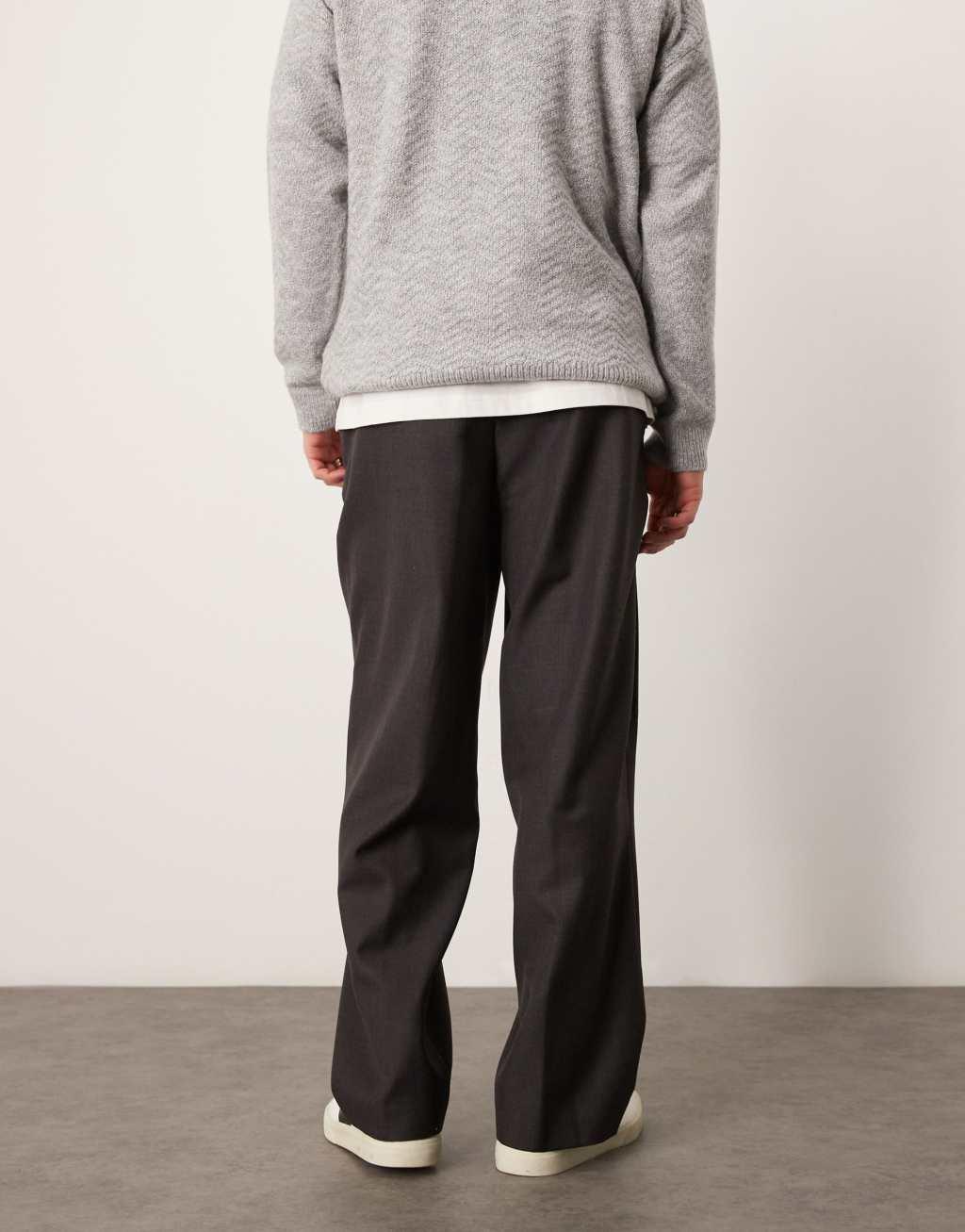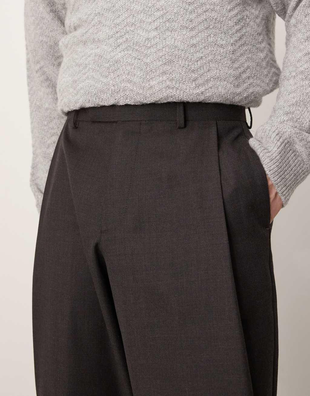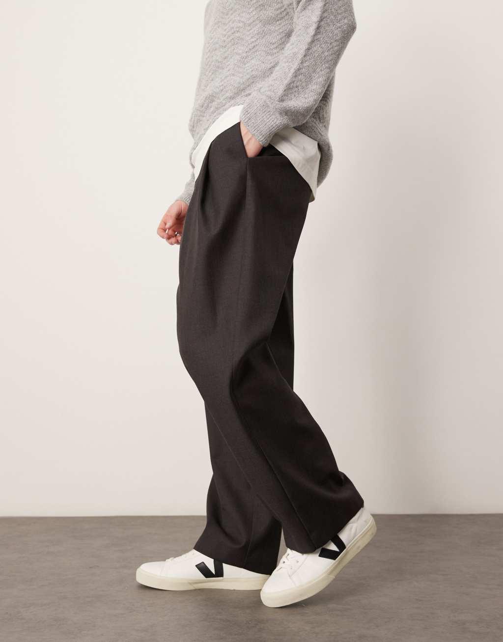 ASOS DESIGN smart wide leg pants with deep pleats in gray