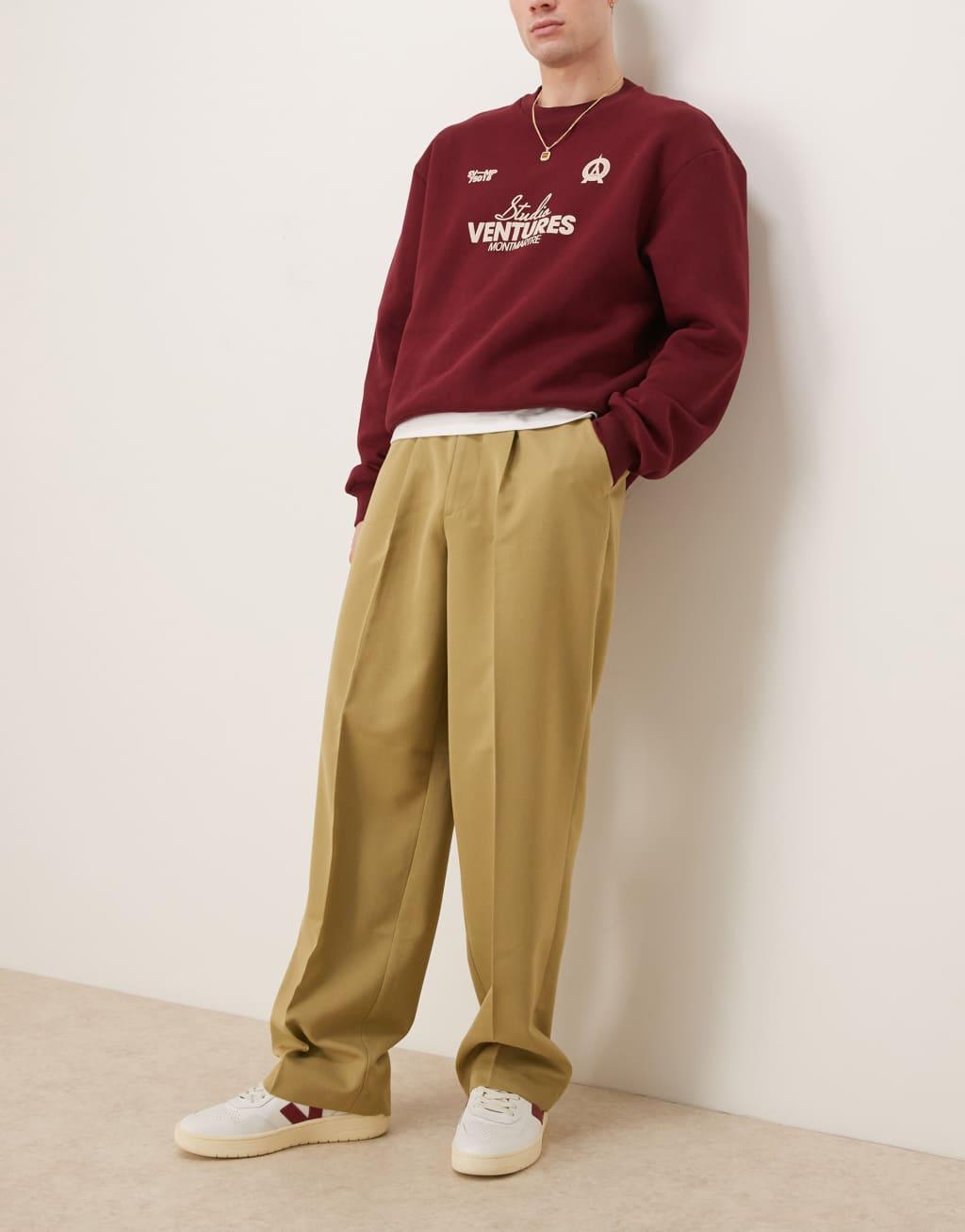 ASOS DESIGN smart wide leg pants with front pleat in camel