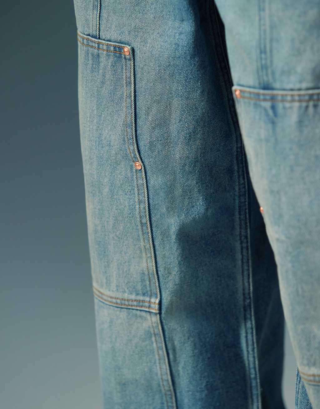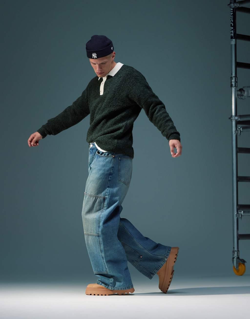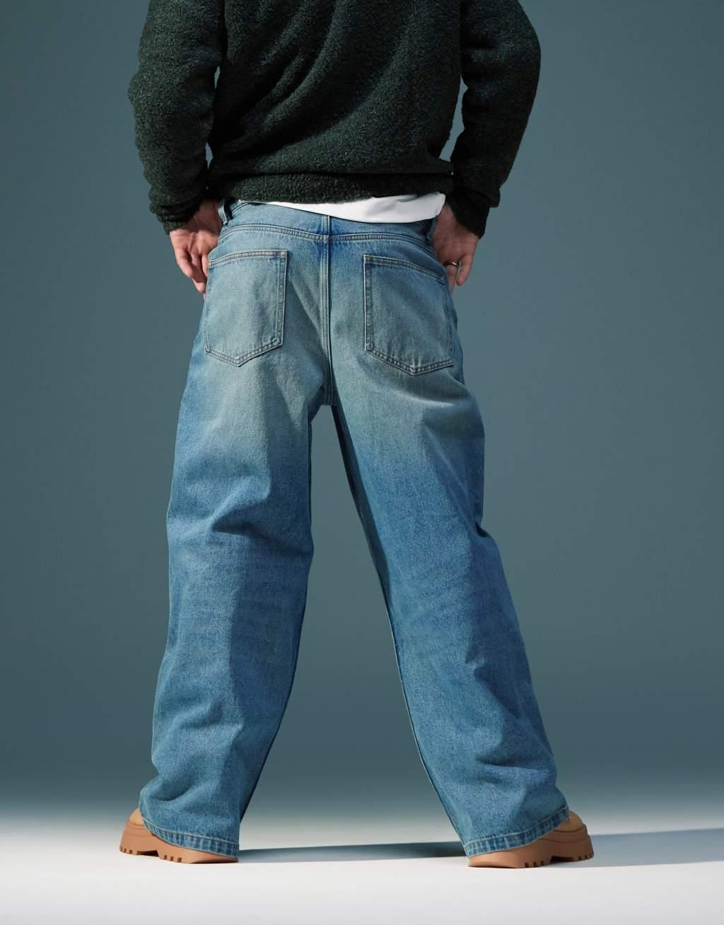 ASOS DESIGN super baggy carpenter jeans with tint in mid wash blue