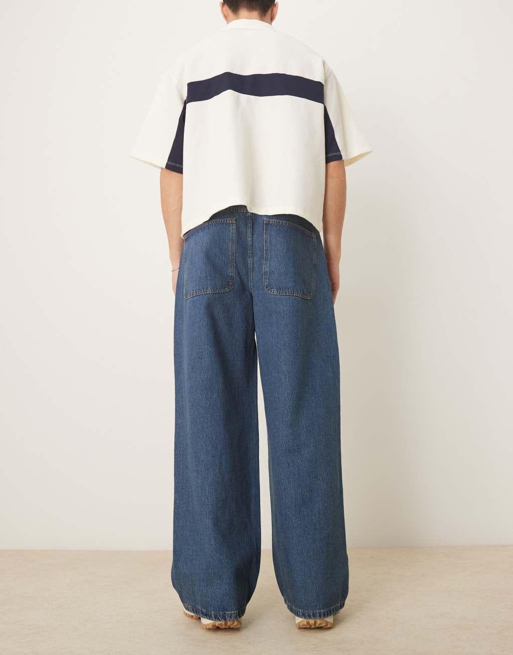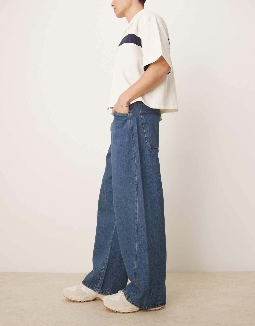 ASOS DESIGN super baggy jeans with twisted seams in mid wash blue