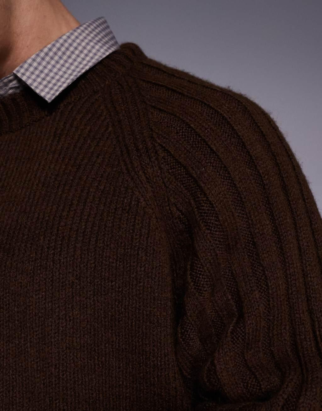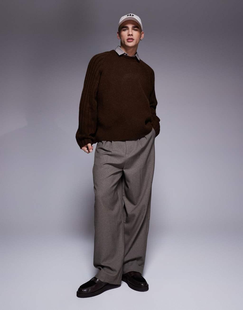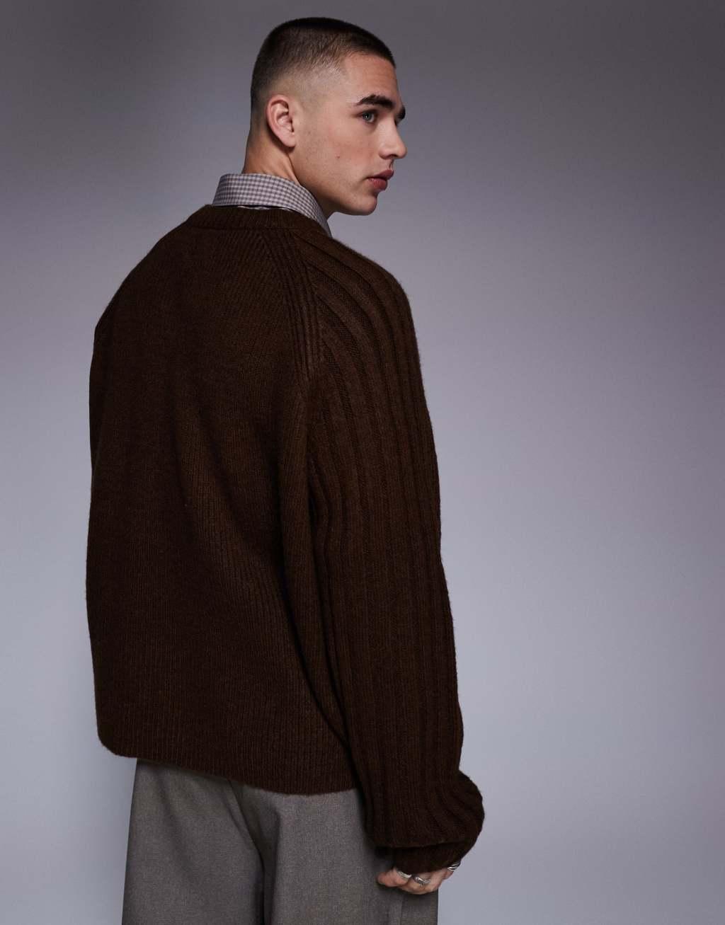 ASOS DESIGN super oversized boxy fit knit crew neck sweater with wide rib sleeves in brown