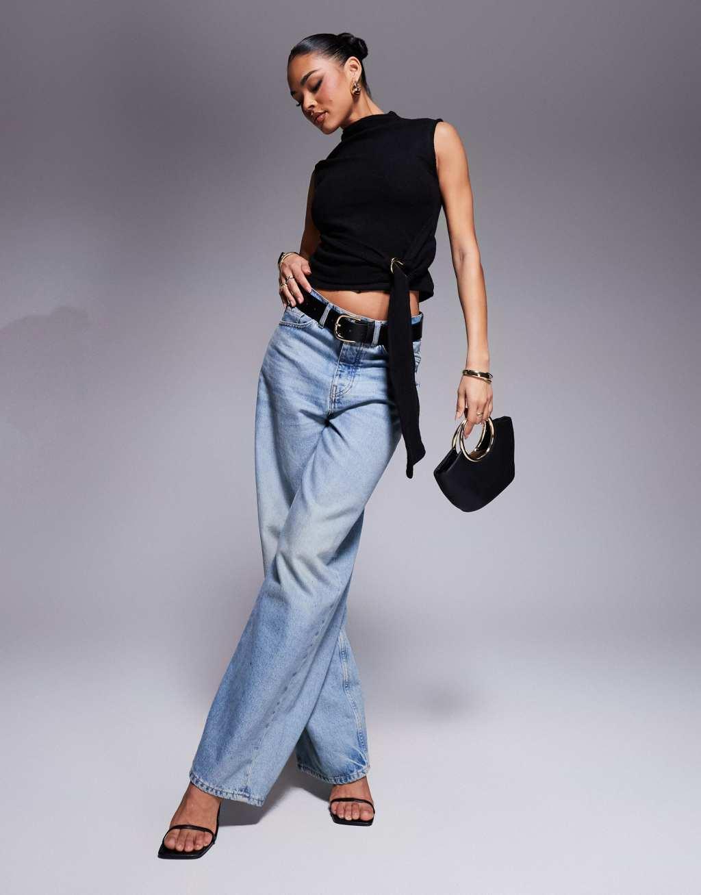 ASOS DESIGN super soft grown-on neck sleeveless top with hardware metal trim in black