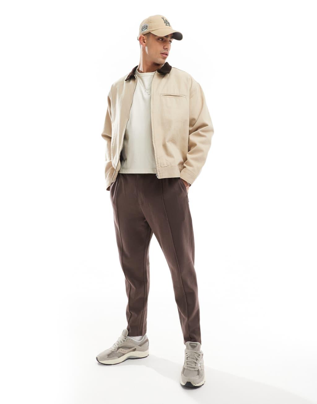 ASOS DESIGN tapered sweatpants with zip closure in brown