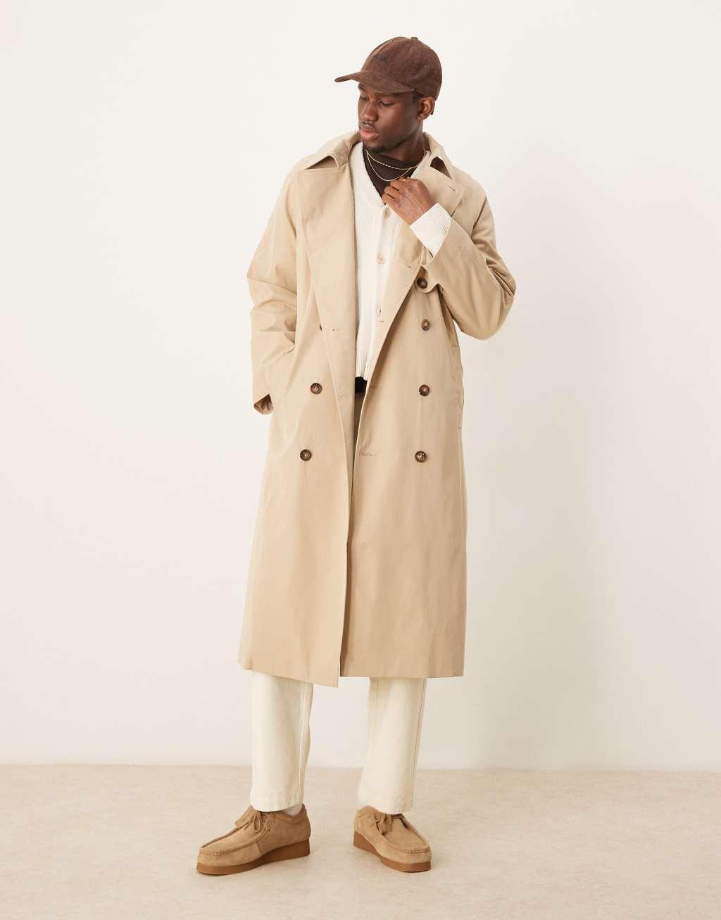 Jacket by ASOS DESIGN Spread collar Button placket Double-breasted cut Tie waist Side pockets Storm shield Regular fit