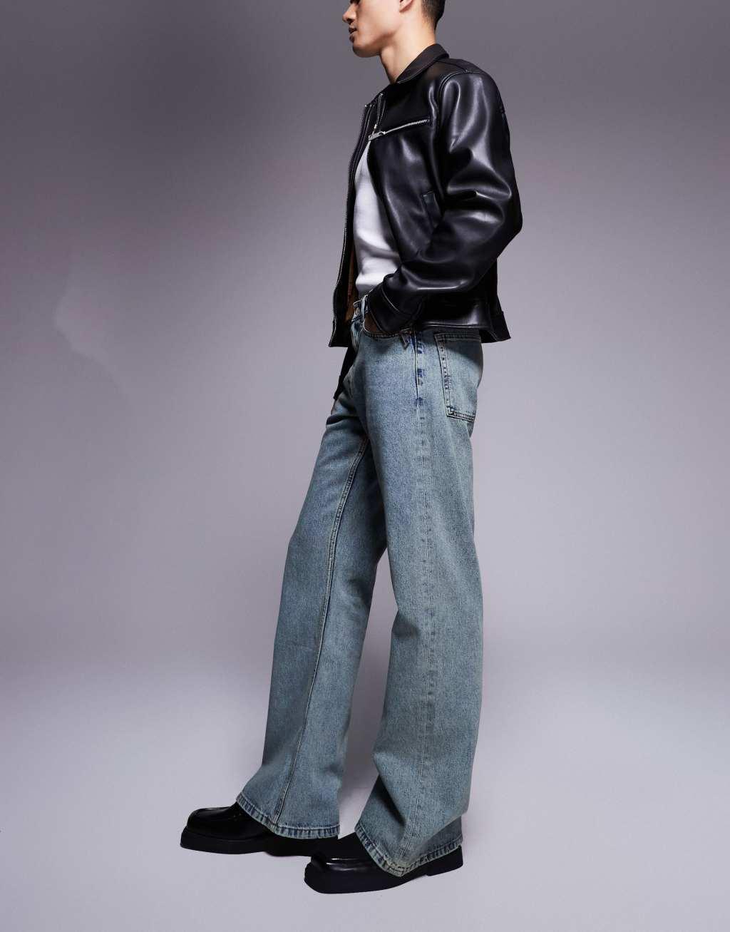 ASOS DESIGN wide flare jeans in light blue vintage tint