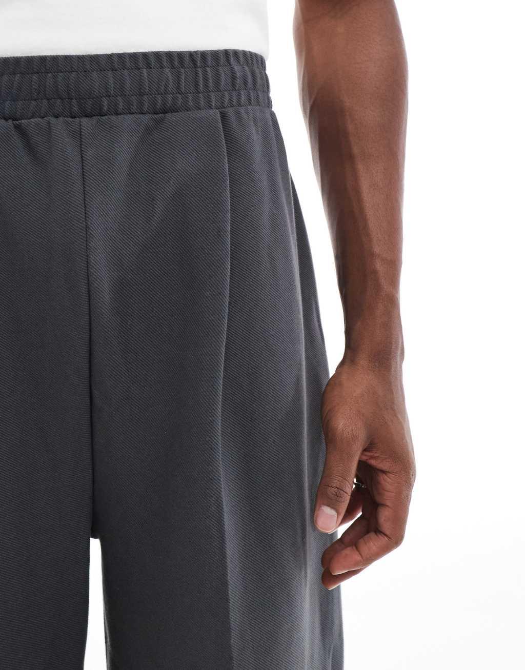 ASOS DESIGN wide leg twill jersey sweatpants with pintucks in washed black