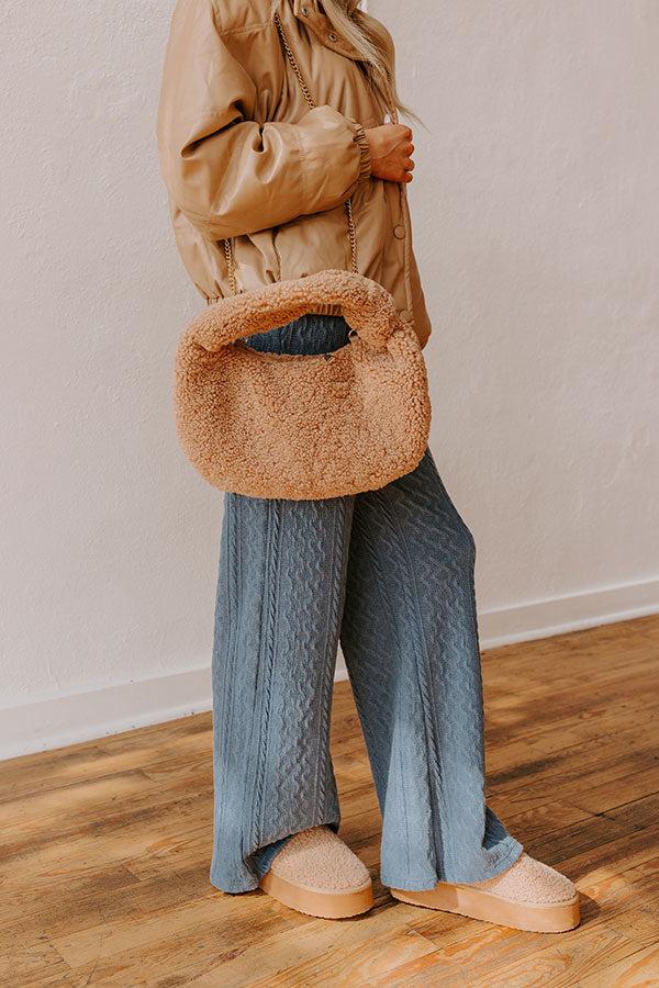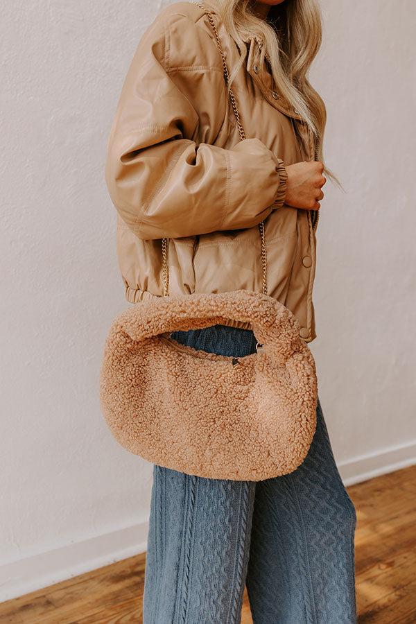 - Elevate your look with a pop of texture with this playful sherpa tote! Its soft feel and accent knot make it the trendy piece you need to diversify your stylish accessory collection.