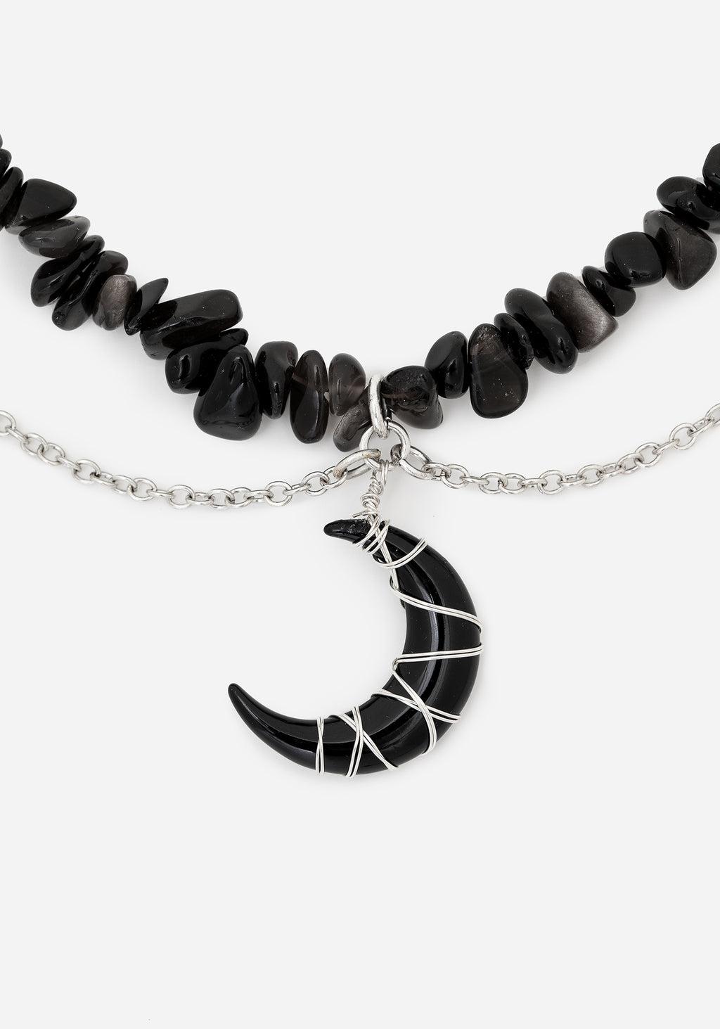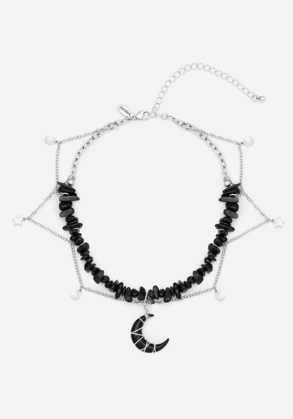 Silver Moon Pendant Necklace Moon and Moth Details Hand Wrapped Metal on Moon Charm 43cm + 8cm 50% Iron, 30% Epoxy Resin, 20% Zinc