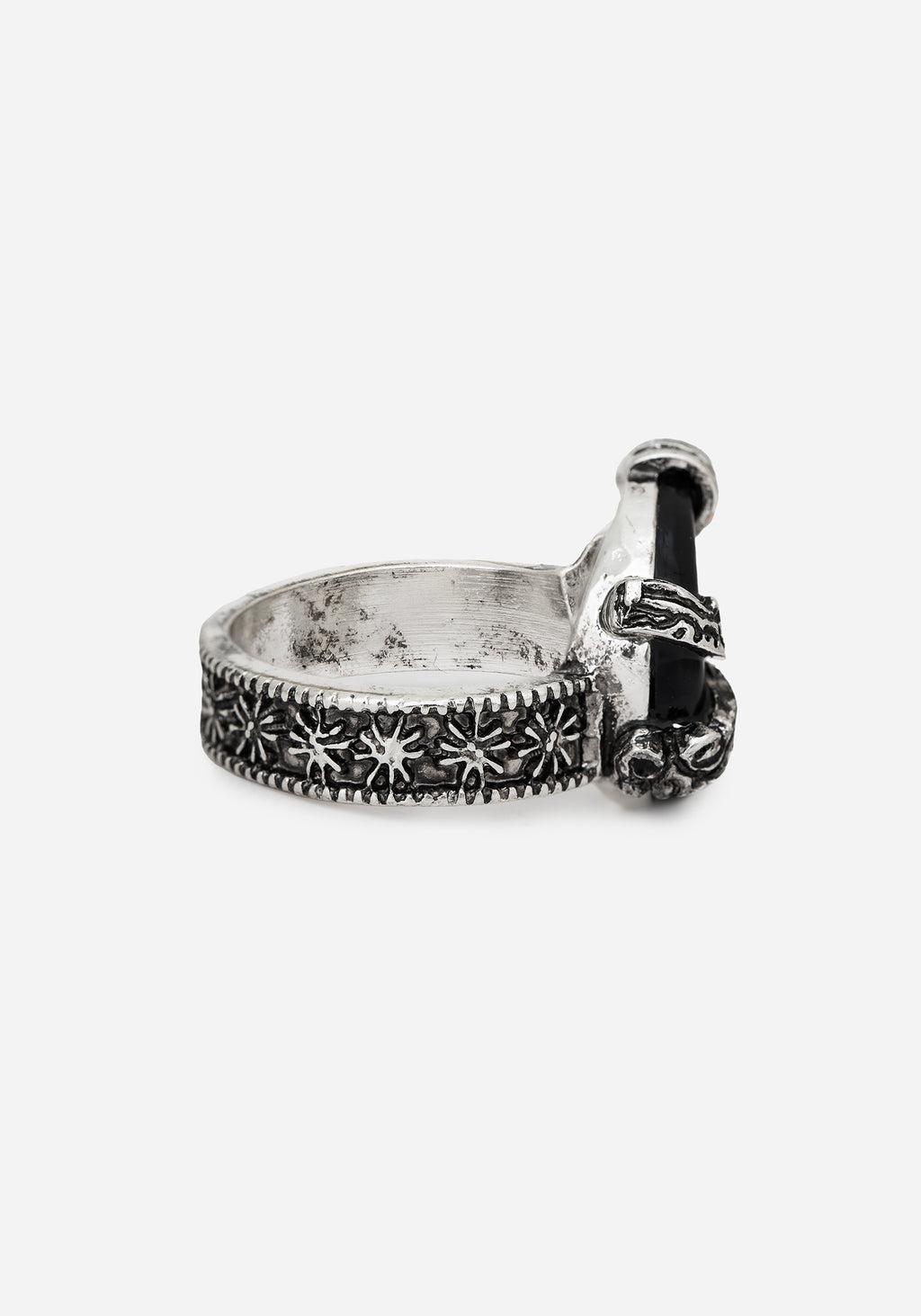Silver Moon Pendant Ring Vintage Moon Design Faux Stone Non-Plated S/M - 17mmM/L - 19mm 75% Zinc, 20% Plastic, 5% Brass