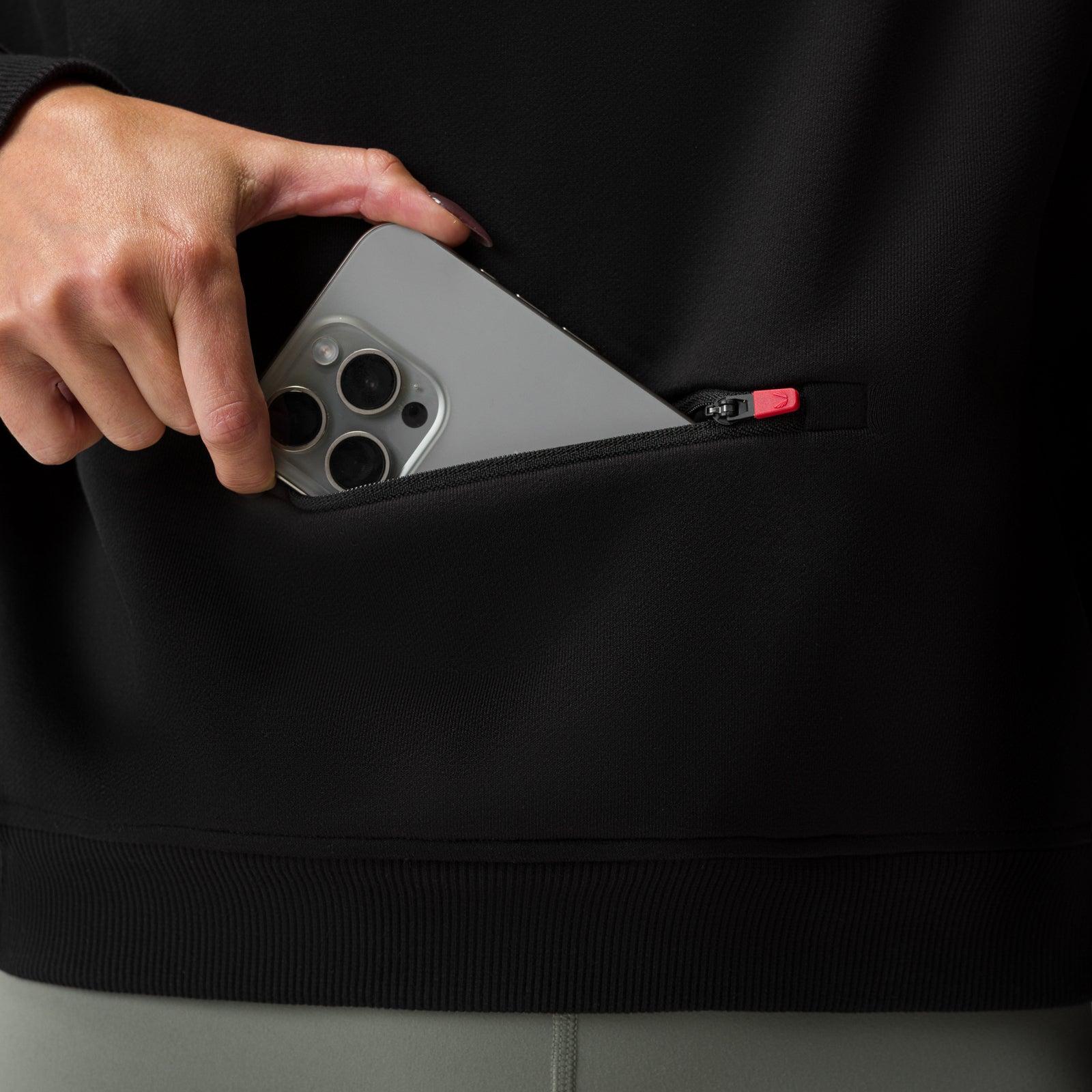 The perfect mid-crop hoodie for training and lifestyle. Constructed from an engineered patented Sorona® French Terry material, combining the soft strength of French Terry with advanced materials. Designed with a relaxed fit, adjustable hood and ribbed side panels. A zippered drop pocket and reflective “ASRV” logo complete the design. Model is 5'2" and 108lbs wearing size XS.