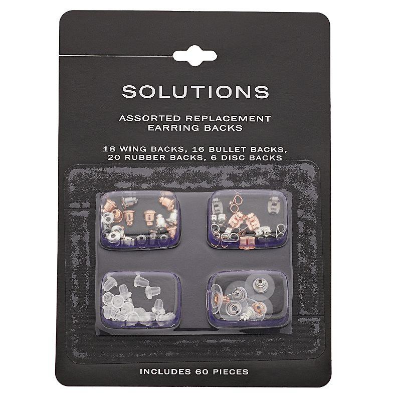 Give unusable earrings new life with these replacement backings. Give unusable earrings new life with these replacement backings. Includes: 18 butterfly backs, 16 bullet backs, 20 rubber backs, 6 disc backs Metal: iron, zinc alloy Plating: gold tone, silver tone Not appropriate for children 14 years old and younger. Size: One Size. Gender: female. Age Group: adult.