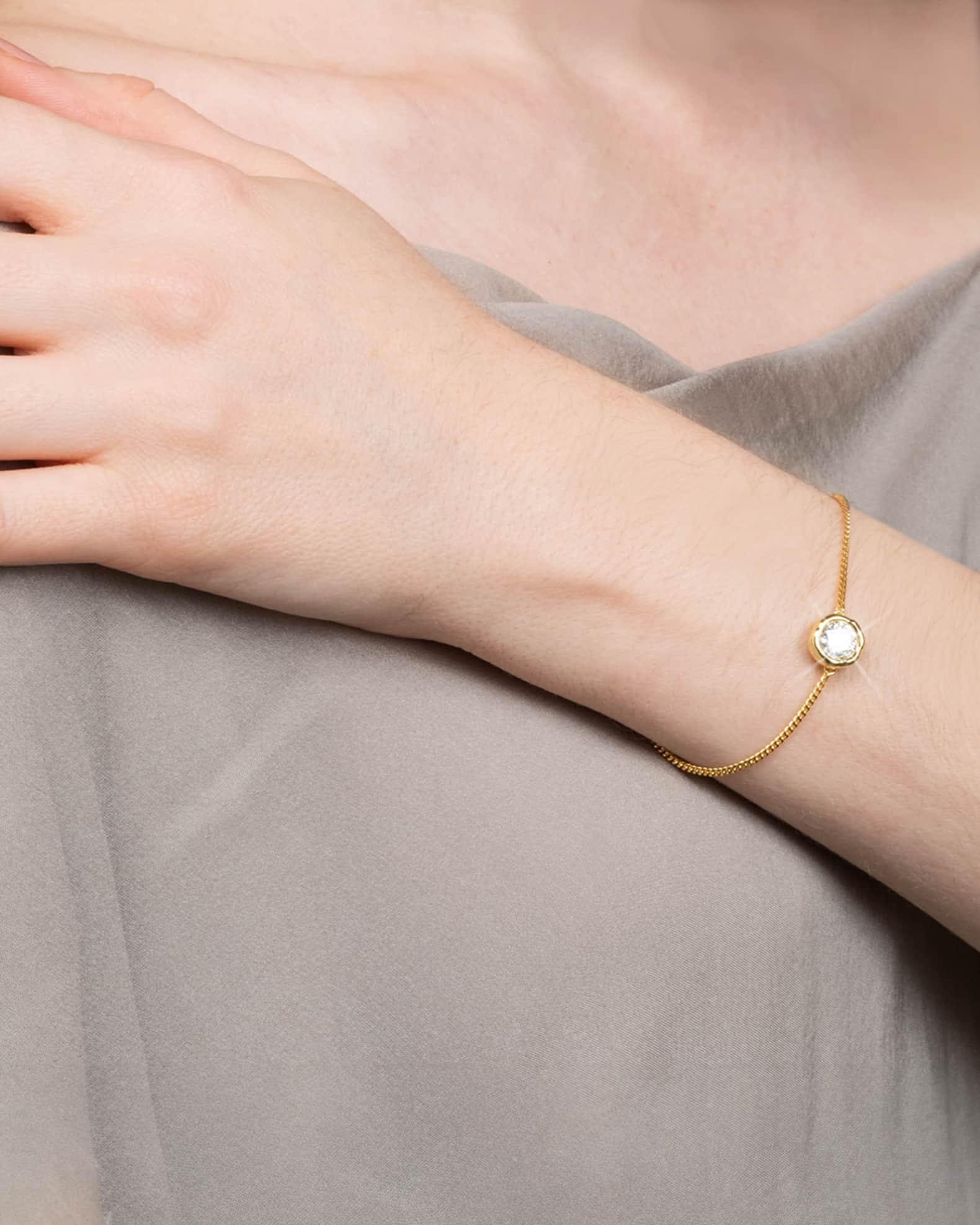 Alexis Bittar soft bracelet includes one cubic zirconia bezel 14-karat gold plated brass Adjustable length Hook clasp Spot clean Imported To clean your jewelry, wipe with a soft untreated cloth and store separately to preserve colors and avoid scratches.