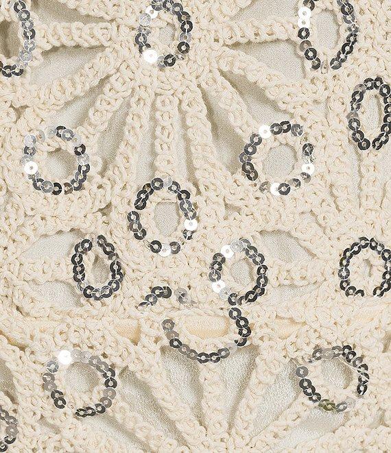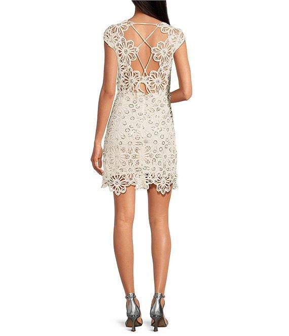 From ASTR the Label, this dress features:Floral crochet and sequin fabricationCrew necklineSleevelessSequin appliques throughoutExposed criss cross self tie closureFully linedScallop hemlineHidden back partial zip closureApprox. 35.5" lengthCotton; lining: polyesterDry cleanImported.