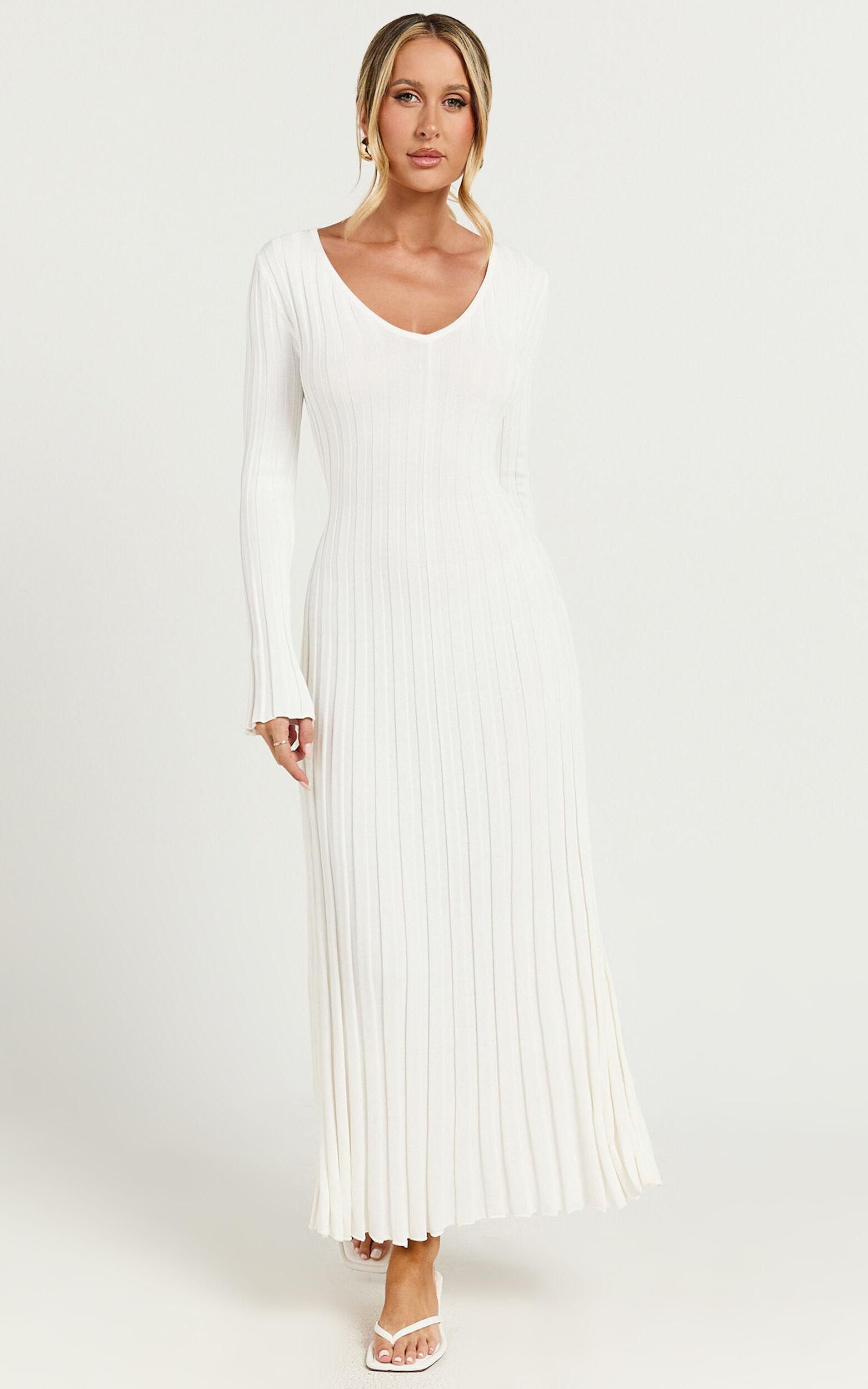 Elevate your casual wardrobe with our Astra Midi Dress in White. This effortlessly chic knit dress features a flattering V-neckline and long sleeves, perfect for transitioning between seasons. Crafted from a soft viscose fabric, it feels incredibly comfortable against the skin while offering a stretchy fit that hugs your curves in all the right places. Whether you're heading to brunch or meeting friends for dinner, this versatile midi dress is sure to turn heads wherever you go. Embrace your individuality and feel empowered in this must-have piece from Showpo's collection of trendy dresses.Product Details:Pull on styleKnit DressV NeckCasualMidi lengthLong SleeveFabric: Knit (Viscose)Size and FitSize S / 8 length: 130cm / 51.18inMaterial and Care60% Viscose, 40% NylonHigh Stretch