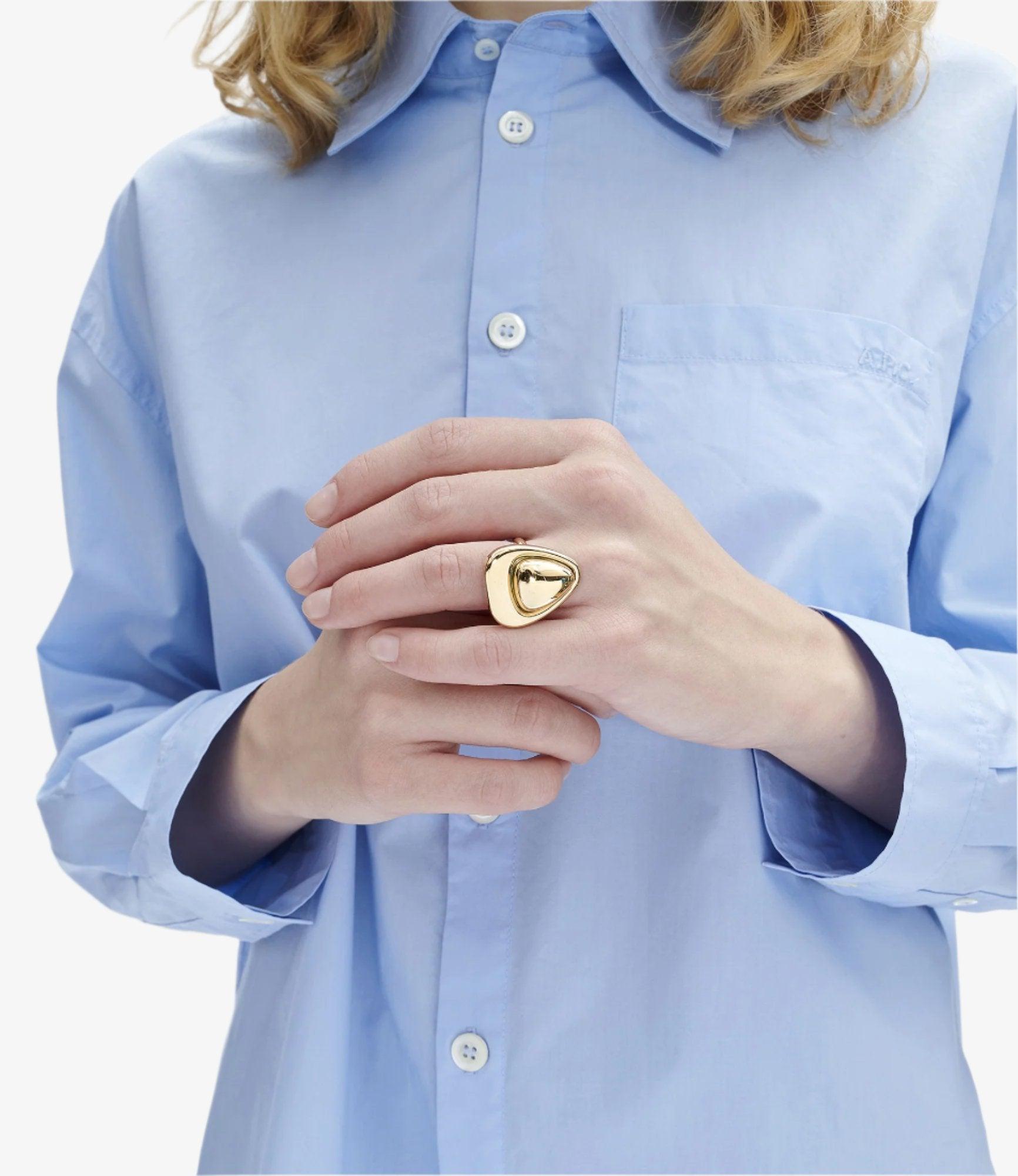 A.P.C. Women's ring. - Rounded triangular ring inspired by the Astra bag. - Brass ring.