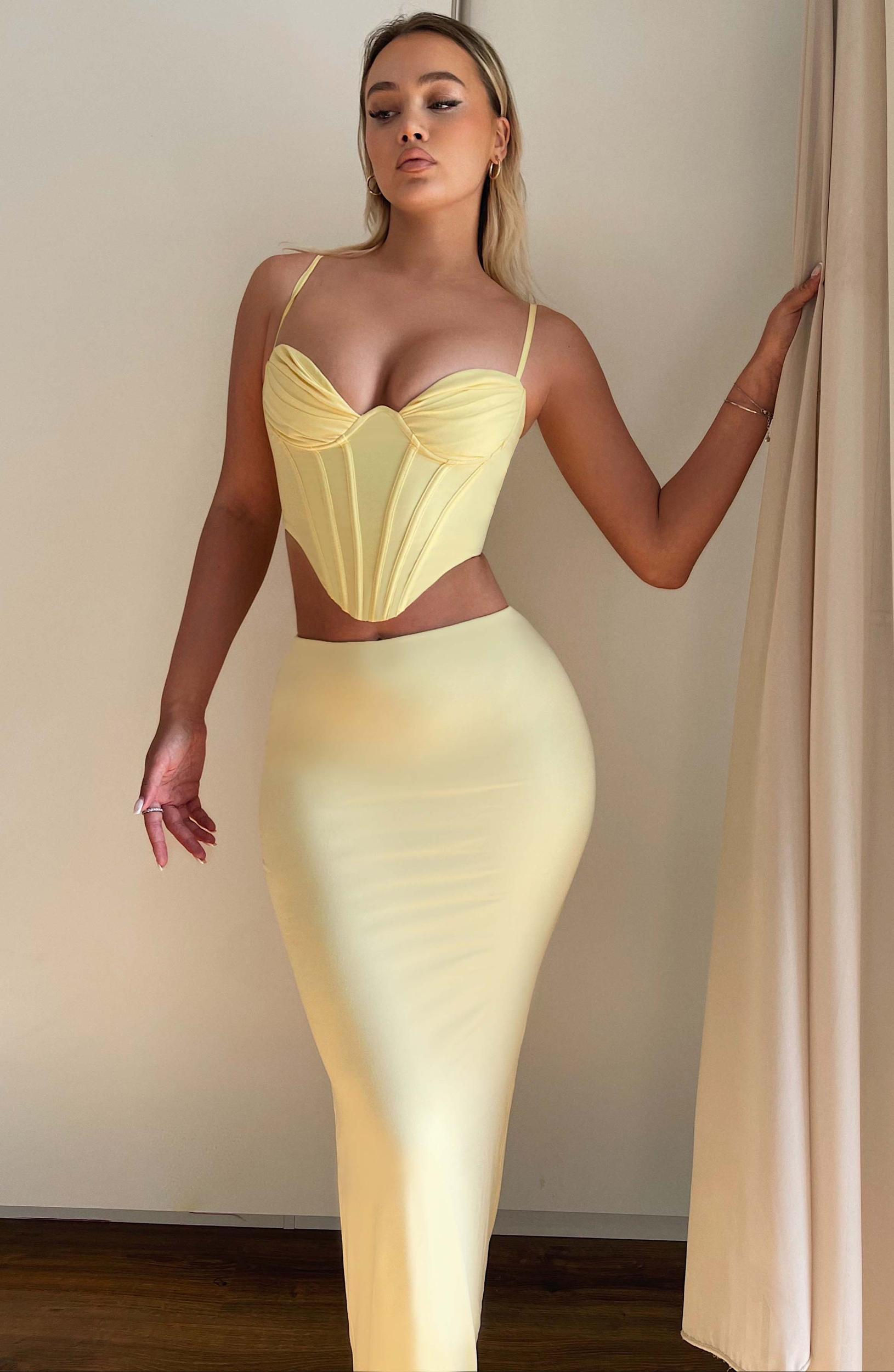 Priscilla is our brand new, ultra flattering bralet top, designed in our luxe stretch mesh with slightly sheer, long sleeves. Each sleeve hem flares gently out with a tie fastening, while the cups are underwired to help lift and accentuate your cleavage. The look is complete with a tie detail to the front bust. Colour: Lemon. Premium soft stretch mesh. Doubled layered fabric. Long sleeves with flared hem. Underwired cups. Slightly sheer sleeves. Tie detail. Bodycon fit. Moulds to body shape. Cropped length. Model is a size XS and is wearing an XS.