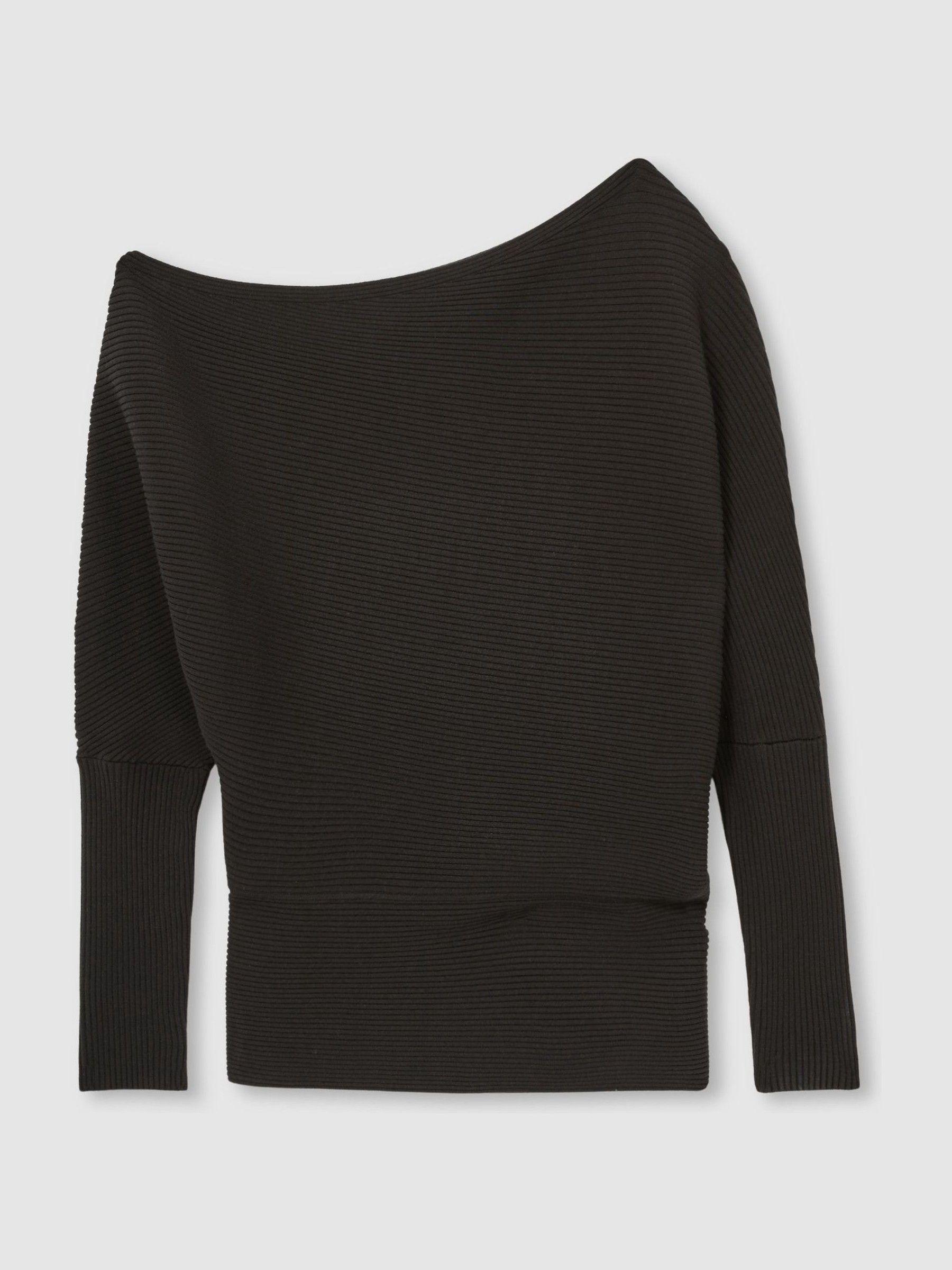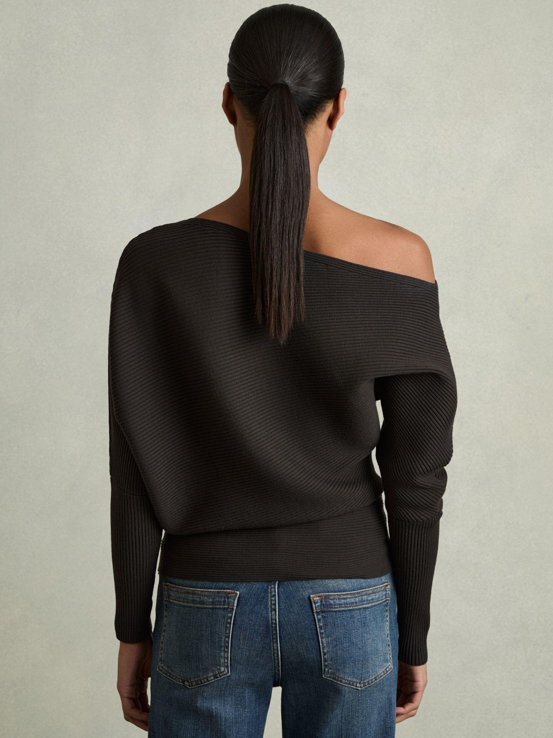Asymmetric Draped Knitted Jumper in Chocolate Brown