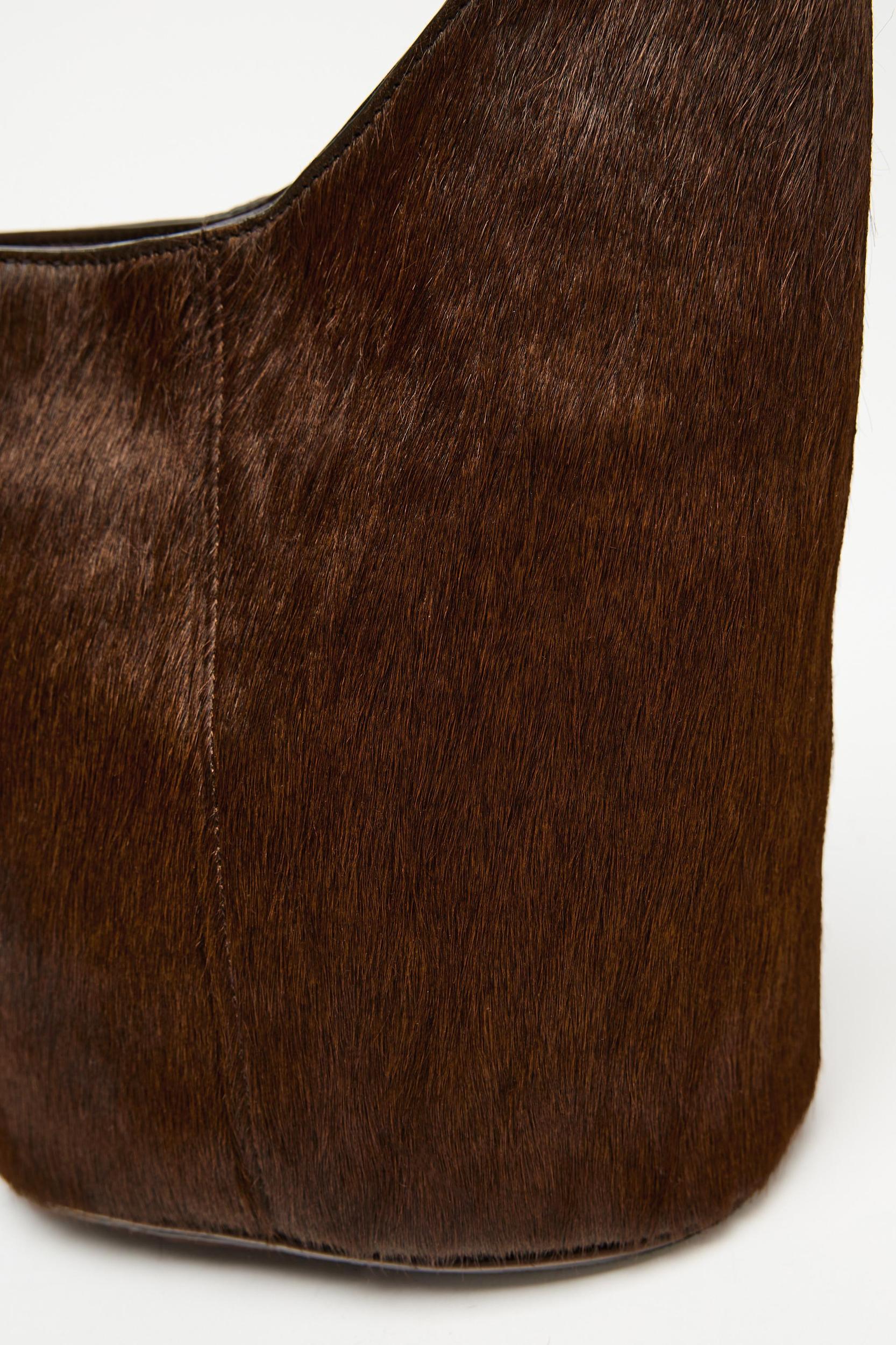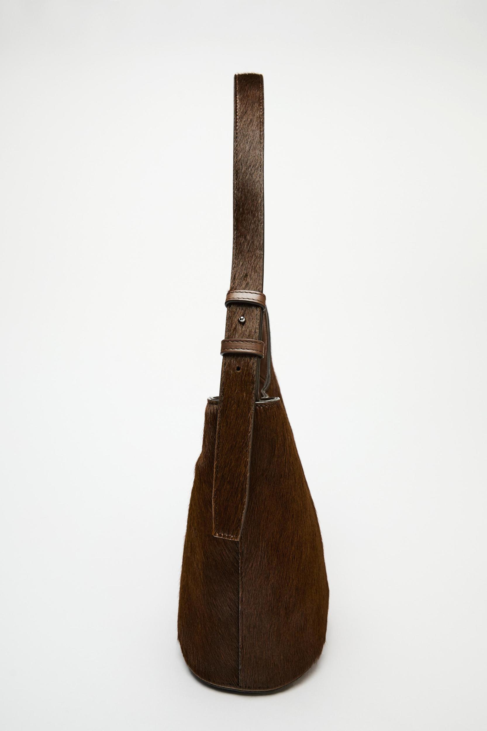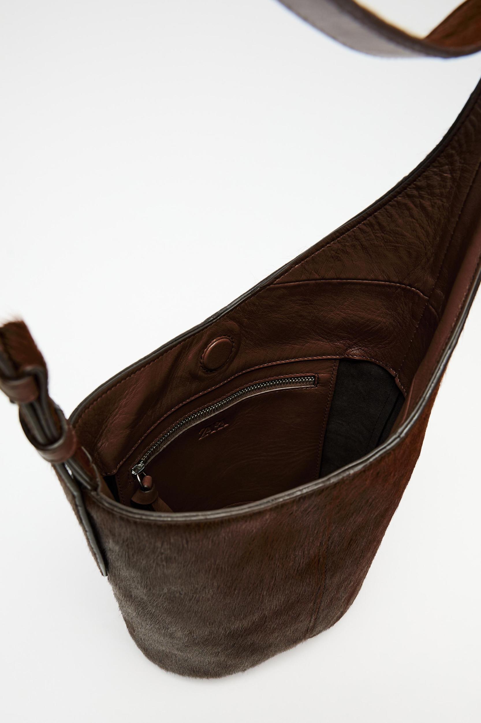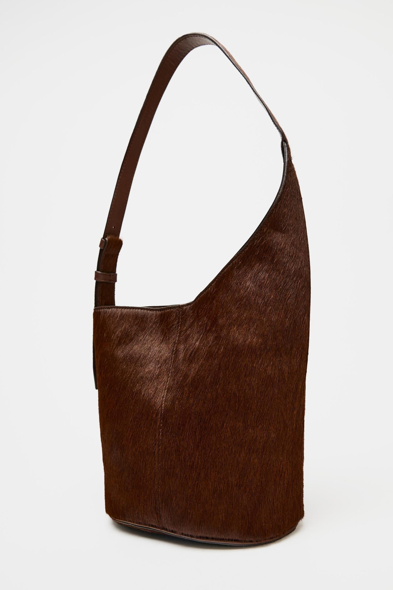ASYMMETRIC FUR-TRIMMED LEATHER BUCKET BAG