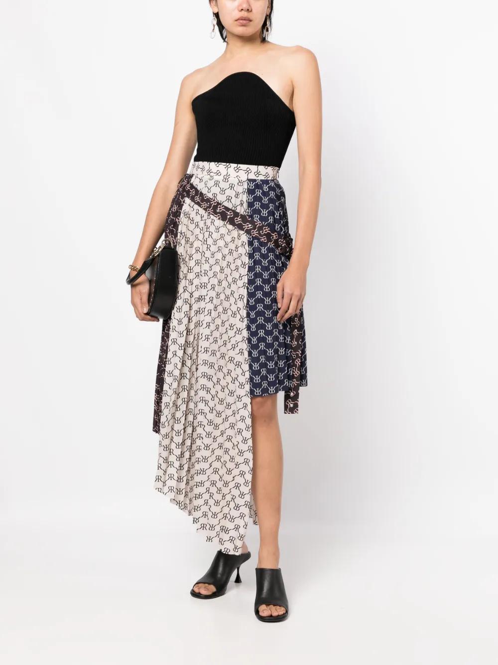 asymmetric monogram-print skirt