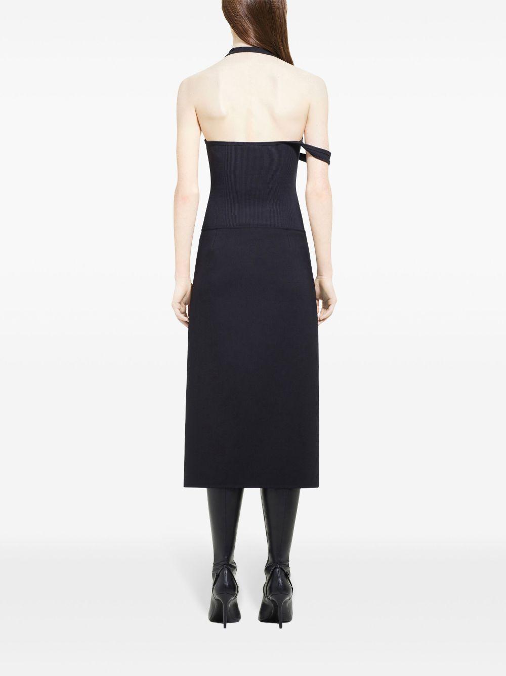Courrèges asymmetric ribbed-knit tank top | Black | black | stretch-cotton | ribbed knit | embroidered logo to the front | asymmetric design | halterneck | sleeveless | straight hem | Cotton/Elastane | Vests & Tank Tops | Tops | Clothing | Women