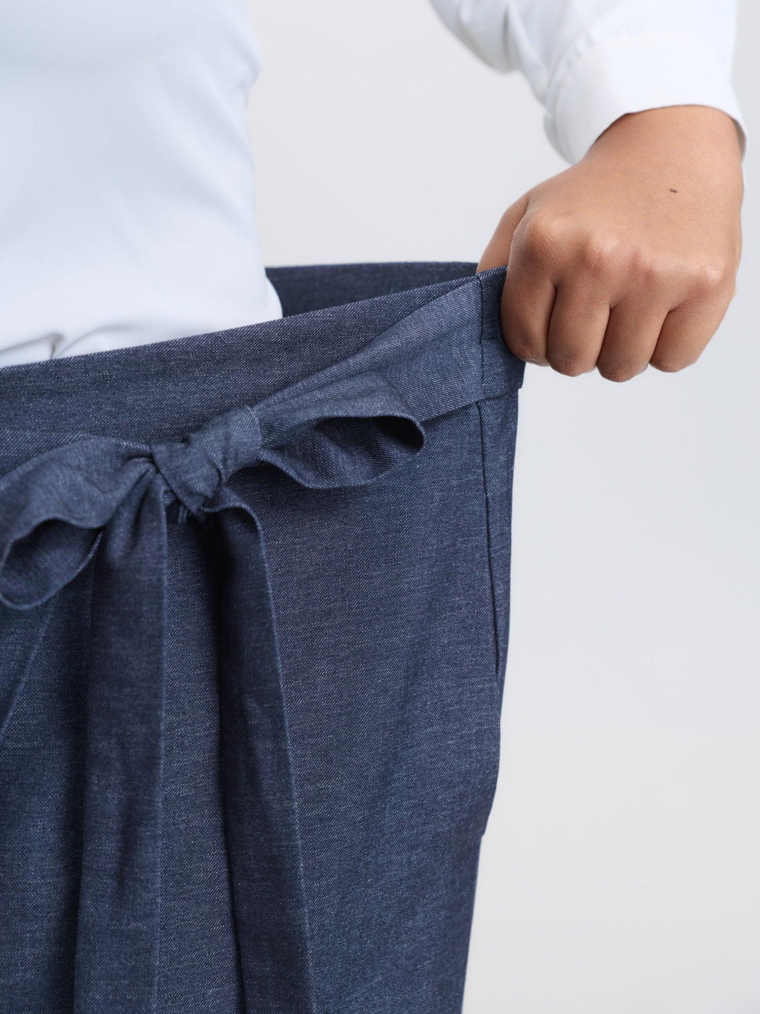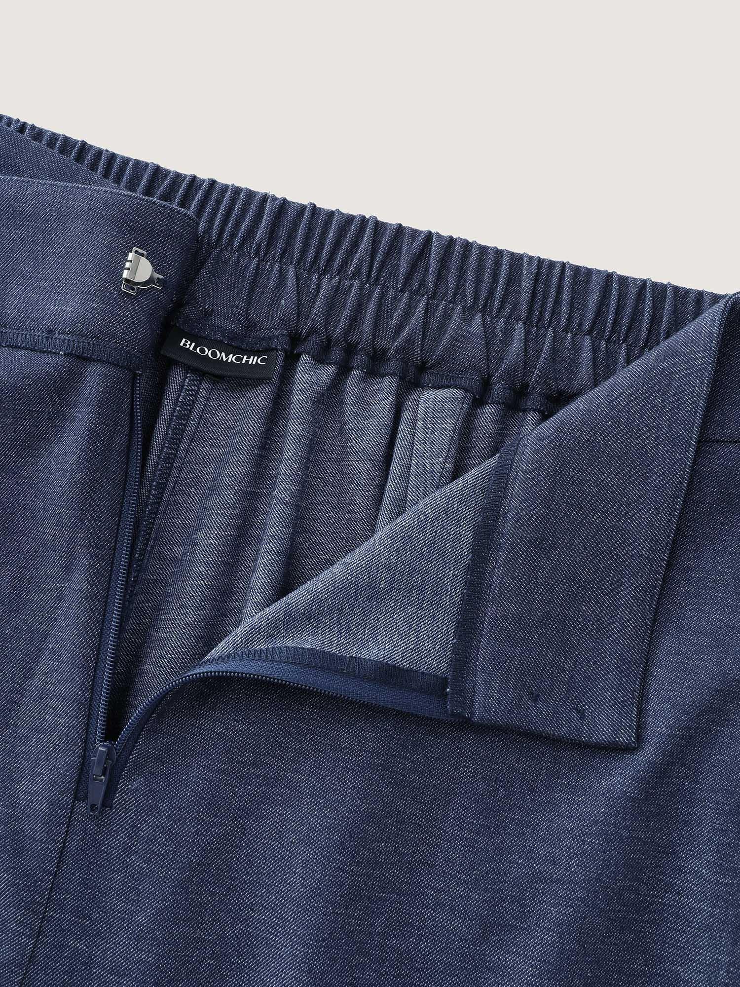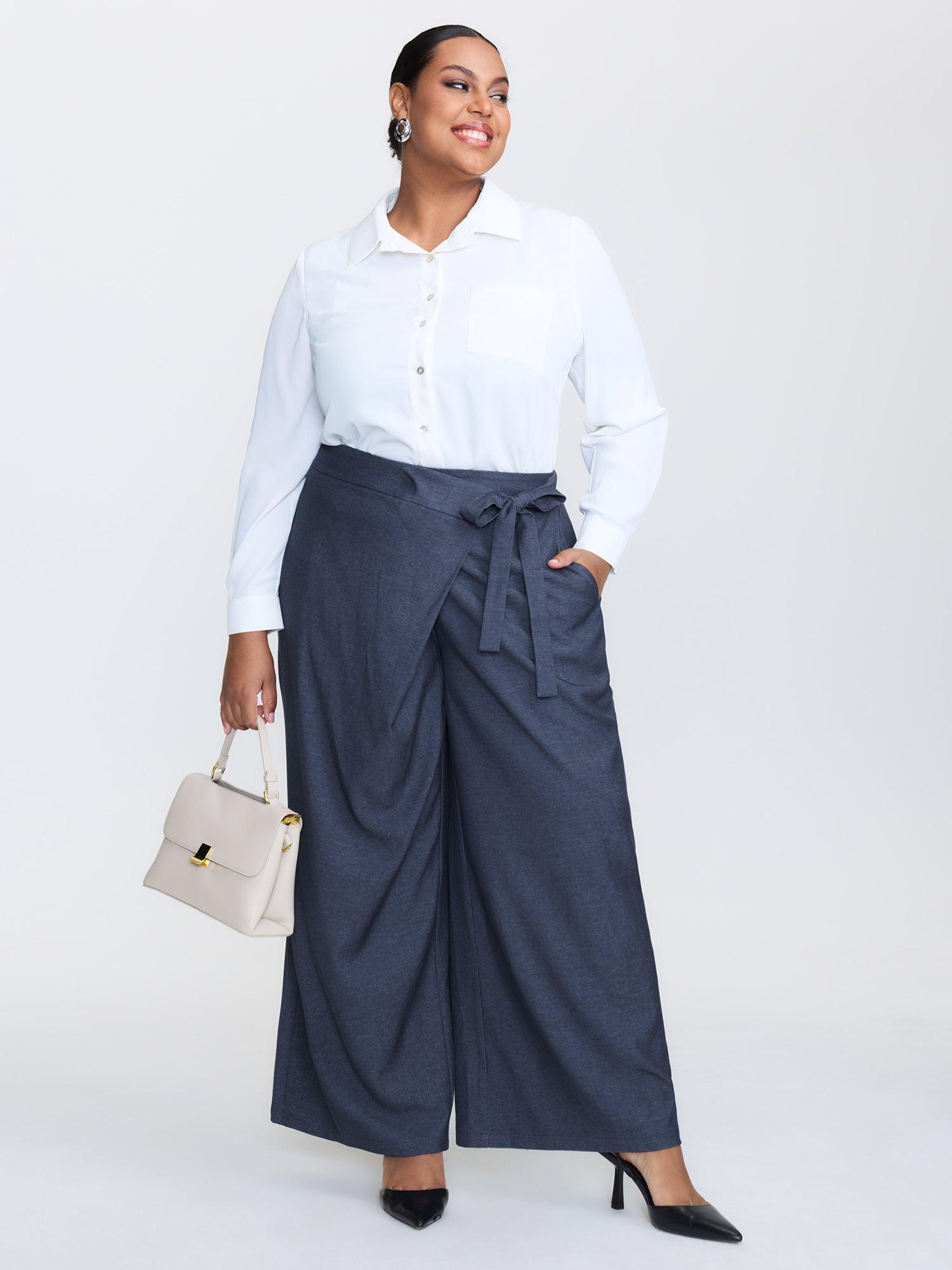 Shop Asymmetrical Belted Denim-Like Pants now and redefine your style with confidence at BloomChic. Tailored for mid and plus-size women. This trendy Bottoms Women, sizes 10-30. Color:Midnight;Style:Office;Waist Design:Mid Rise;Prints:Non;Details:Tiered, Asymmetrical;Pocket:Side seam pocket;Belt:No-belt;Closure Type:Non