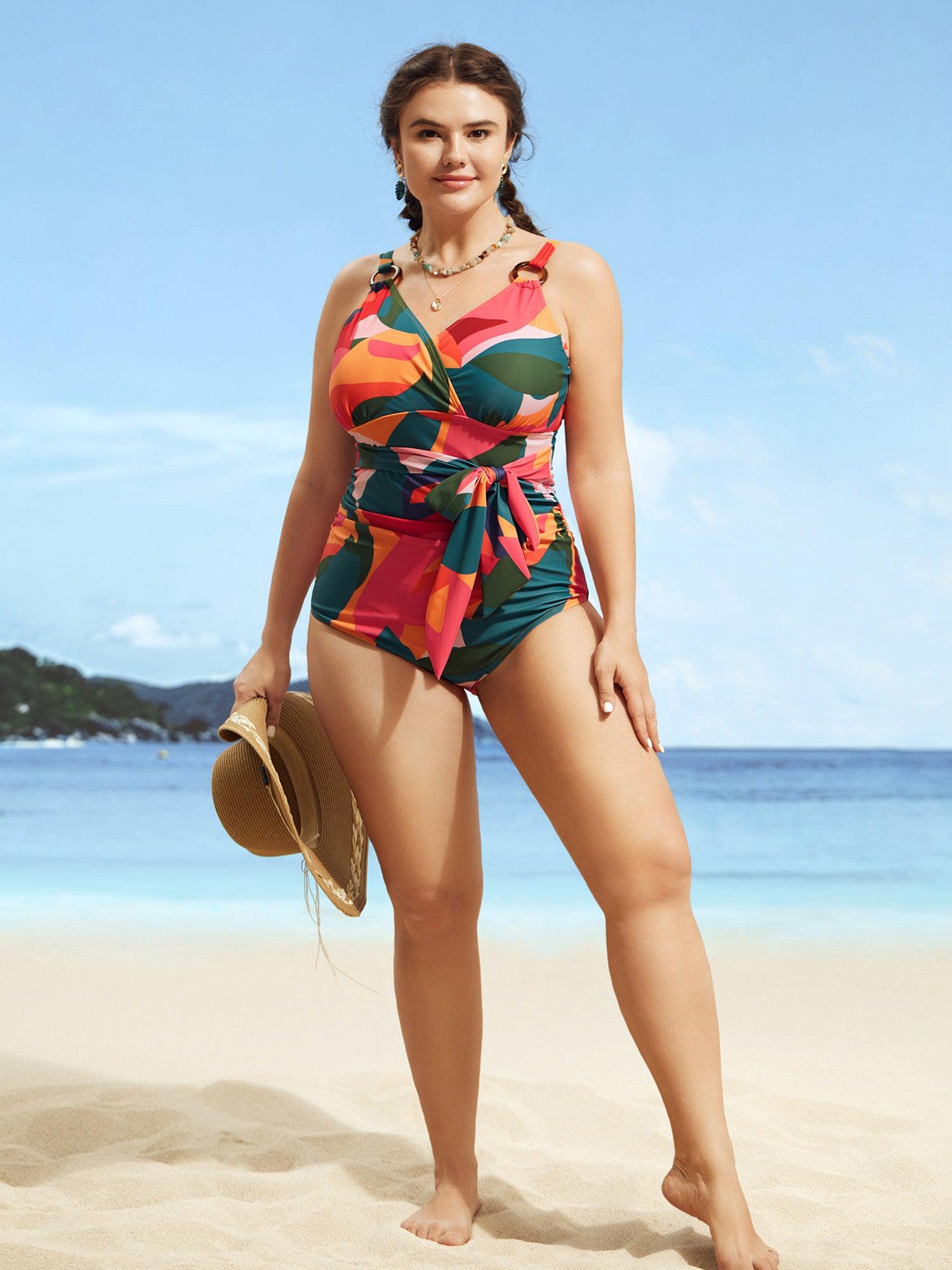 Shop Asymmetrical Colorblock Contrast Ties One Piece Swimsuit now and redefine your style with confidence at BloomChic. Tailored for mid and plus-size women. This trendy Swimwear Women, sizes 10-30. Season:Summer;Color:Multicolor;Style:Beach;Cup Type:Removable cups;Neckline:V-neck;Sleeve Type:Sleeveless;Prints:Geometric & color block;Details:Tie knot, Gathered, Belted;Pocket:No-pocket;Belt:Belt;Chest pad:Removable Padding;Lining:Lining;Closure Type:Non