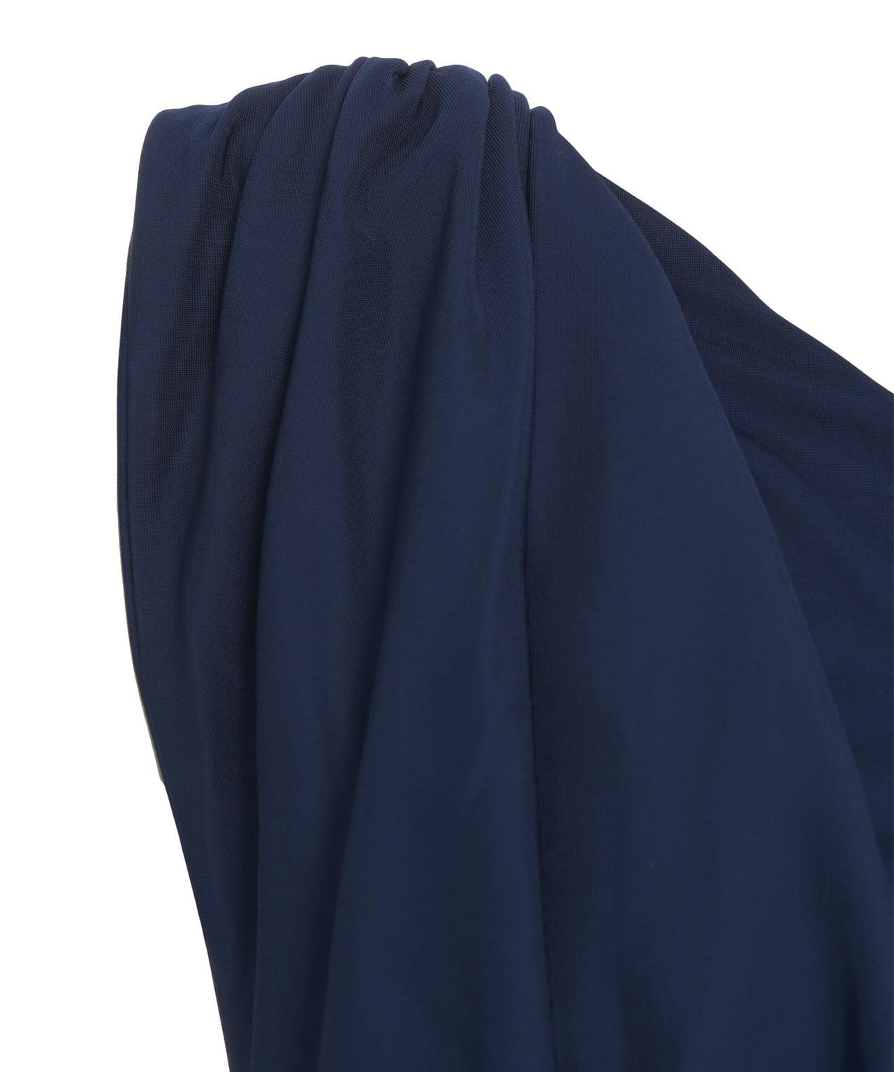 Asymmetrical necklineLogo detailsMade in ItalyRegular fitGolden coloured metallic detailsSide slitInternal hookStretchZipper on the sideDrapingsOne shoulder