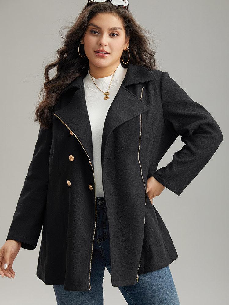 Shop Asymmetrical Neck Buckle Detail Zipper Coat now and redefine your style with confidence at BloomChic. Tailored for mid and plus-size women. This trendy Outerwear Women, sizes 10-30. Season:Fall;Color:Black;Style:Casual;Pattern Type:Plain;Details:Button, Patchwork, Contrast, Texture;Pocket:No-pocket;Belt:No-belt;Closure Type:Button;Lining:No-lining