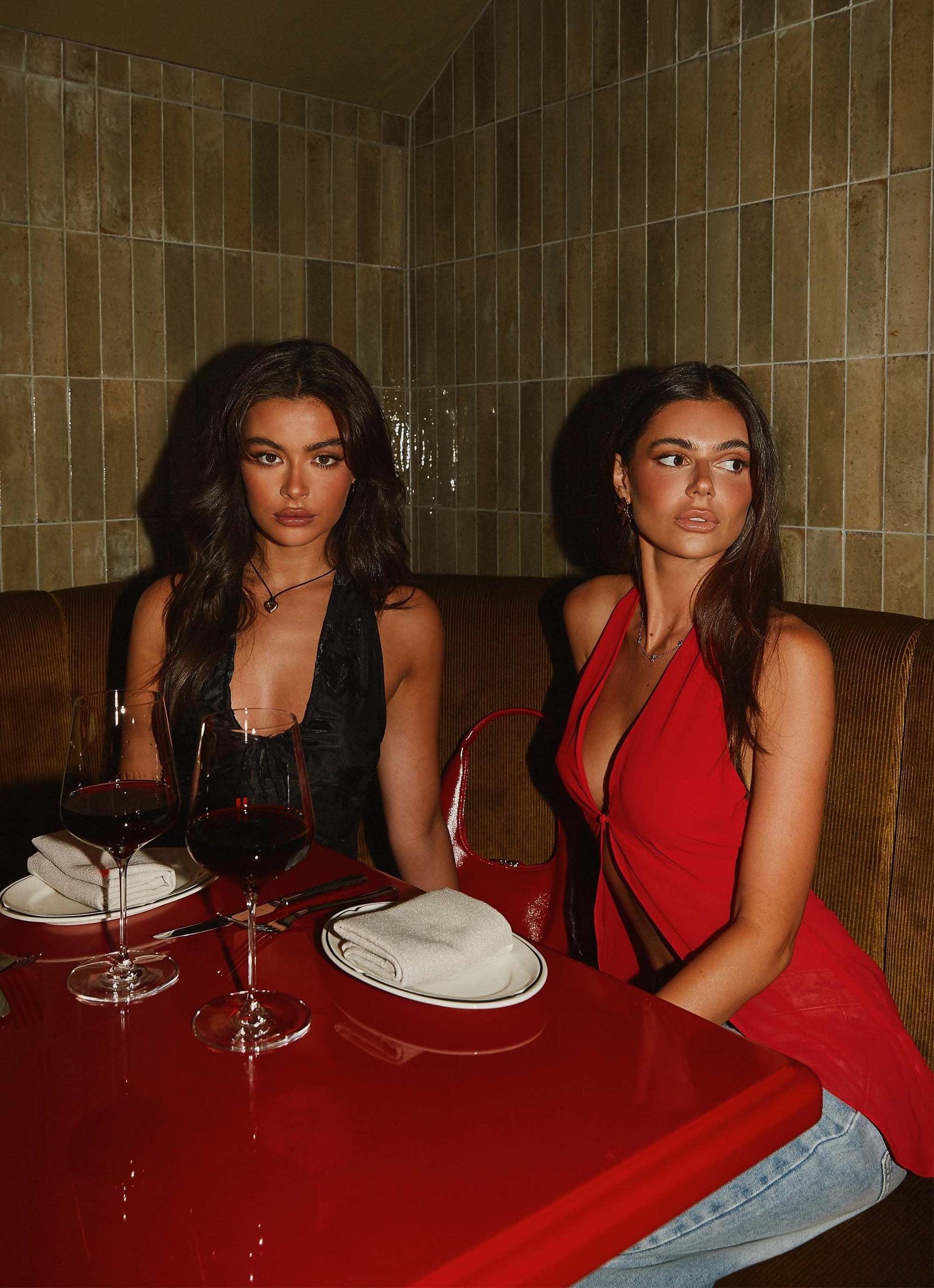 Peppermayo Exclusive Celebrate love in style in the At Last Halterneck Mesh Top – an elegant and fun choice. This halter neck top in semi-sheer mesh boasts a low V-neckline, open back, and single button closure. Upgrade your look with this chic piece! - Halter neck top- Semi sheer- Button closure- No zipper- Open back- Low v-neckline- Lined bust- 100% Polyester Size US 4 measurements:Waist 70cmLength 68cmBust 80cm Ashton wears size US 4 (Small or AU 8 equivalent)