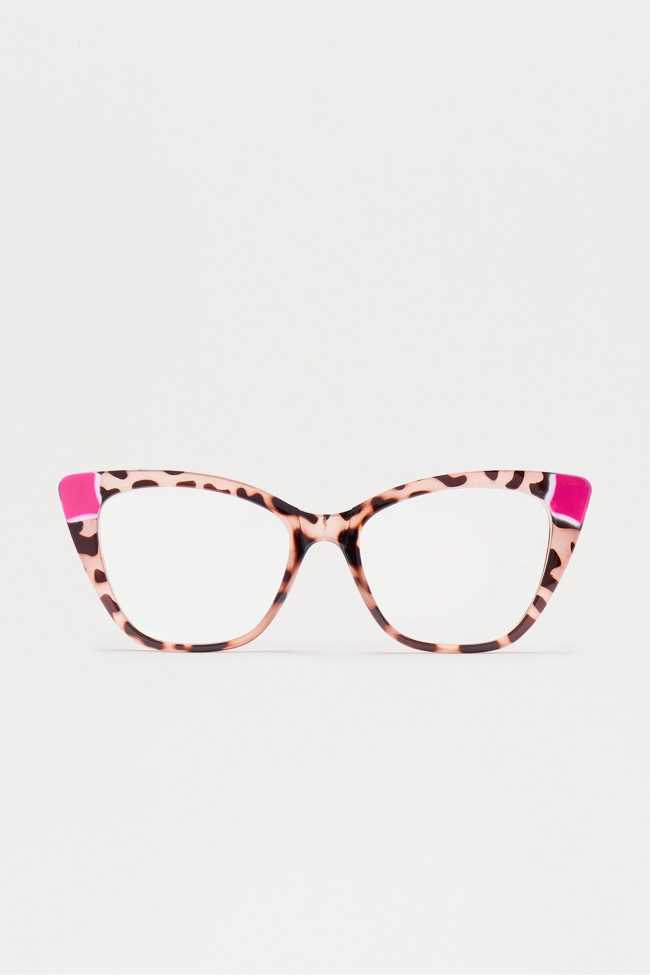Available In Tortoise. Cat Eye Glasses Clear Lens Tortoise Print Plastic Disclaimer: Print Placement May Vary. Imported California Proposition 65WARNING: Cancer and Reproductive Harm - www.P65Warnings.ca.gov.